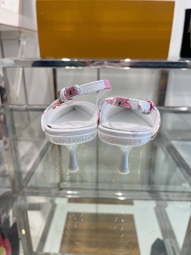 Louis Vuitton 25Ss春夏新款 猫跟凉鞋 Lv经典标志Logo 采用彩色以及鞋面的大面积底色作为对比 创造出鞋面的白三彩或者是黑三彩元素风格,成就