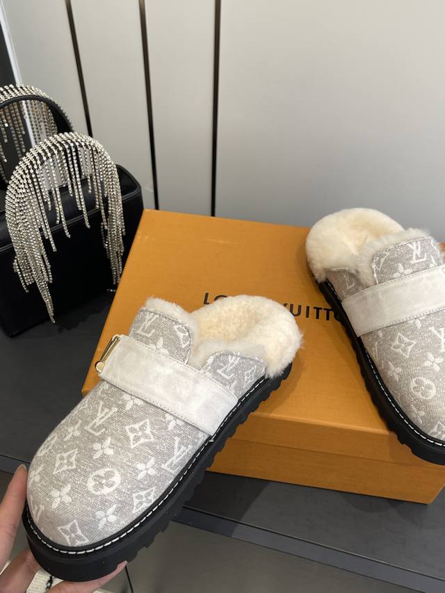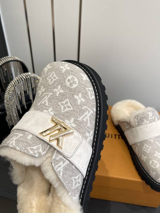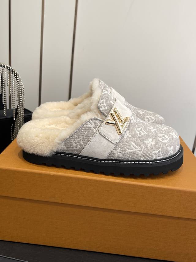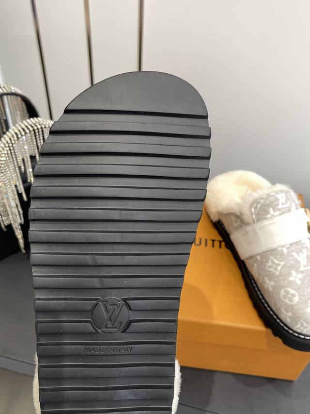/ Louis Vuitton 25Ss秋冬 羊毛半拖鞋 勃肯鞋型体 把时髦想要的元素融为一体 鞋面用皮条纯手工缝制,彰显手工作品的魅力 内里皮毛一体材质 穿起来不