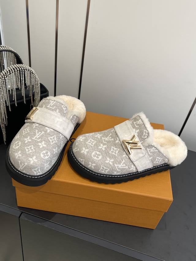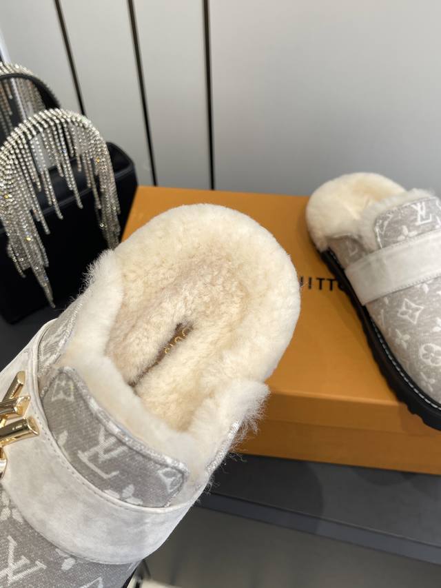 Louis Vuitton 25Ss秋冬 羊毛半拖鞋 勃肯鞋型体 把时髦想要的元素融为一体 鞋面用皮条纯手工缝制,彰显手工作品的魅力 内里皮毛一体材质 穿起来不