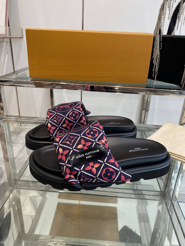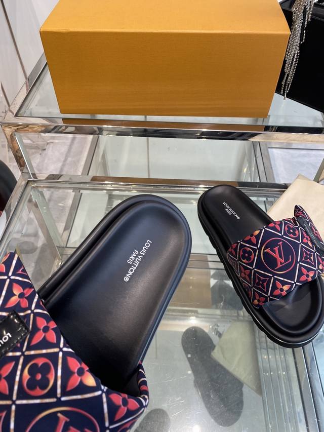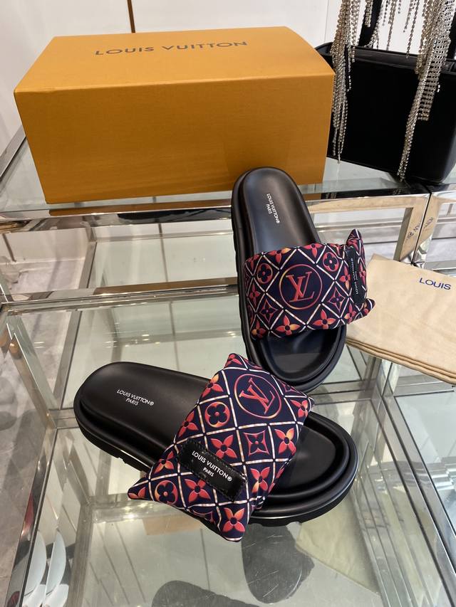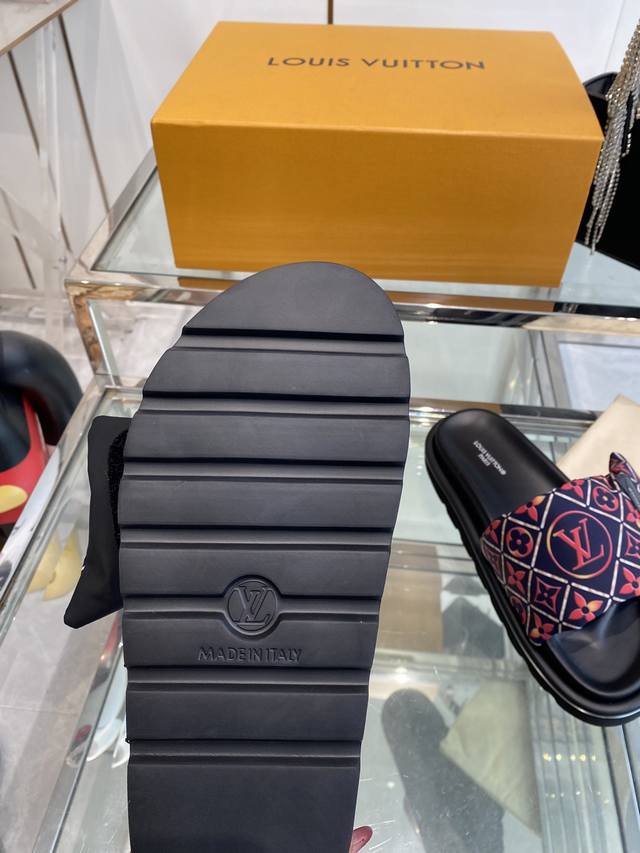 Louis Vuitton 25Ss 夏季新款凉拖 魔术贴 可调松紧的设计 满满的沙滩风情 原版开模Lv金属 Logo装饰鞋面 定制进口提花布料原版老花皮料 水