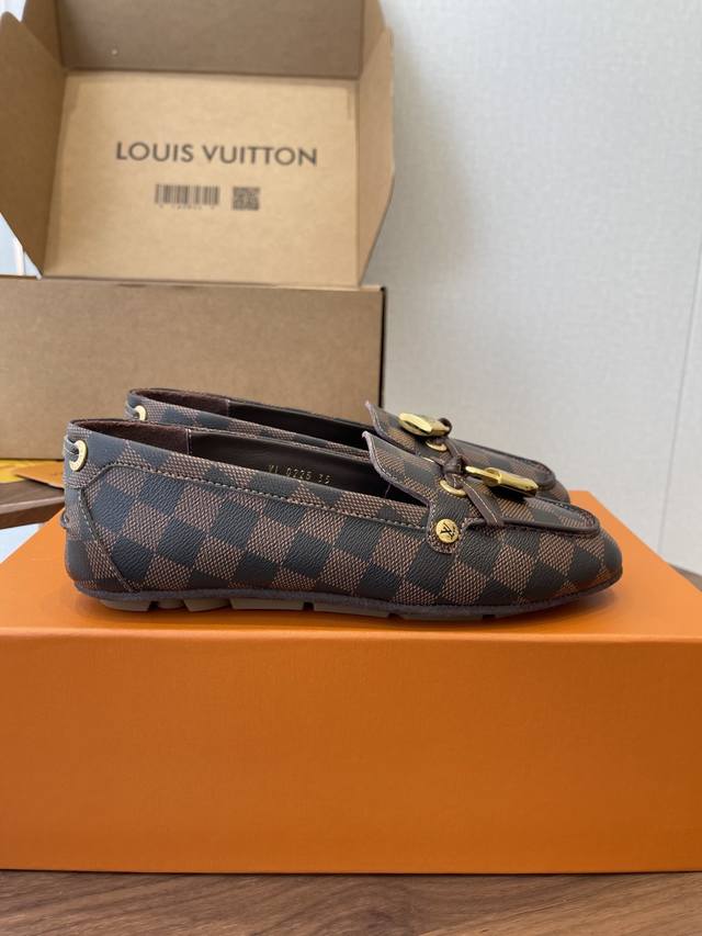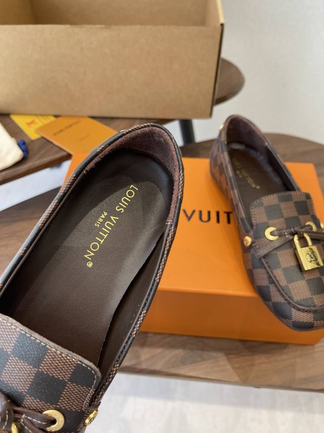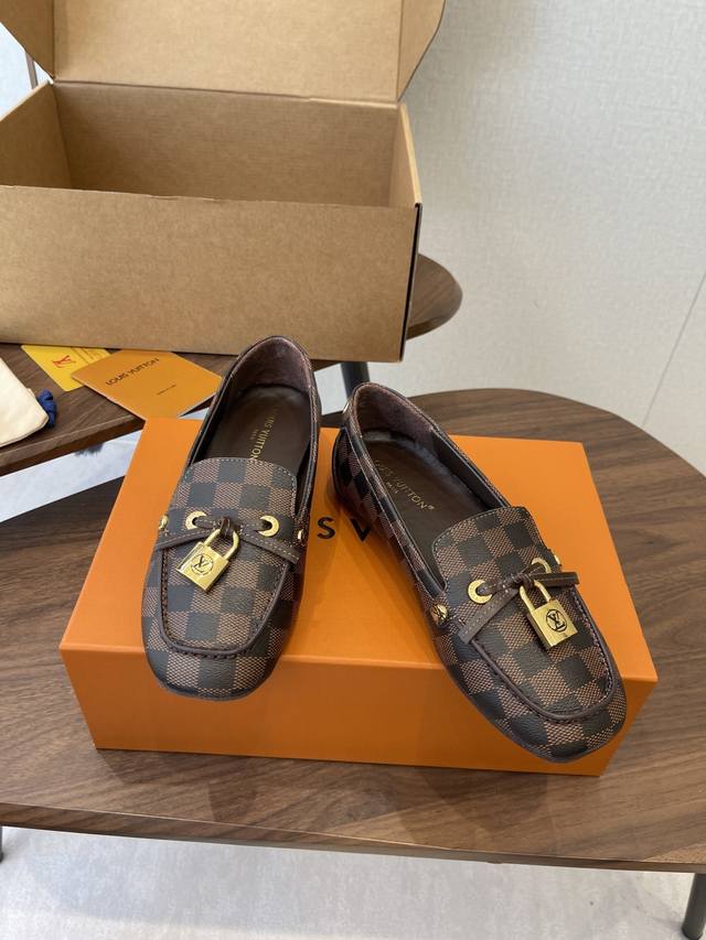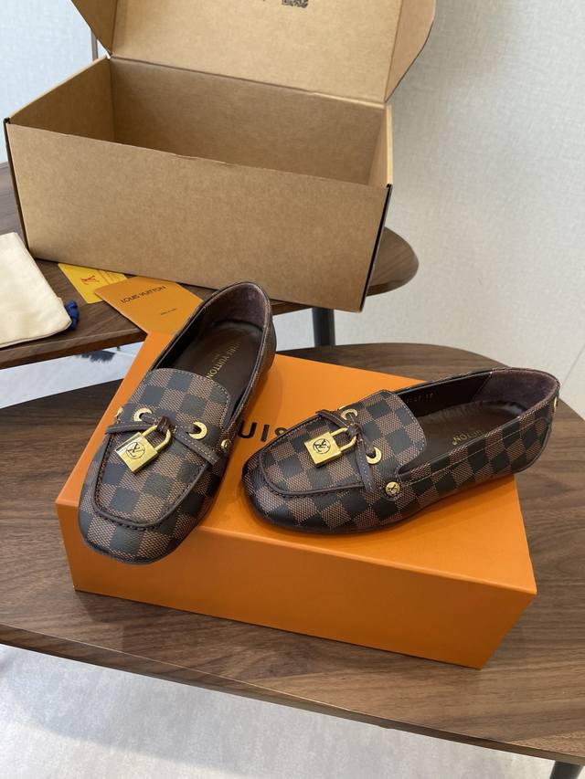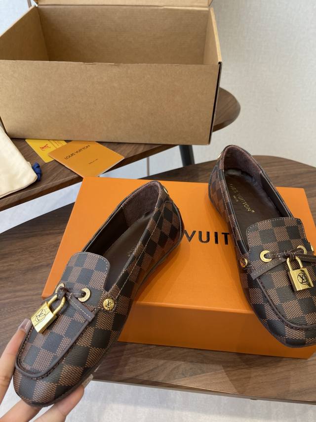 Louis Vuitton 25Ss 平底乐福鞋 豆豆鞋,采用优质牛皮 轻盈舒适的莫卡辛结构搭配手缝鞋面 DDD 点缀Lv Cicle标识和铭纹鞋带端头。饰蝴蝶 版型设计奢华大气 DDD 完美诠释品牌奢华风格 内里采用水染牛皮,原版A级橡胶粒外底, DDD Size:35-42 40 41 42定做不退换 DDD