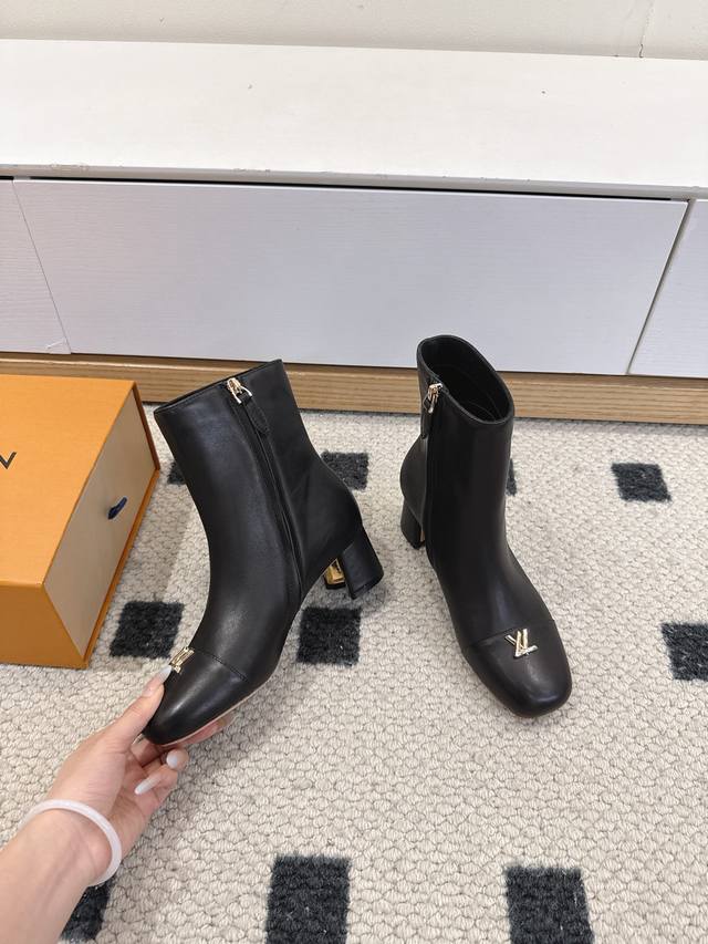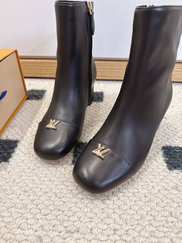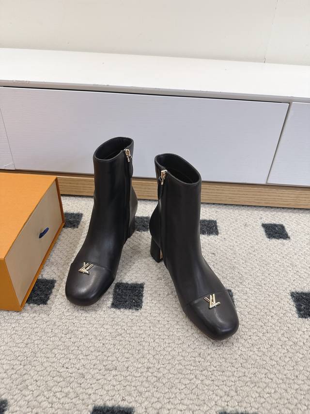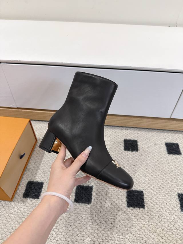 Louis Vuitton 25Ss Lv金属千饰件点高复古短靴 楦型百搭瘦脚Yyds.造型立体饱满,气质满满 上脚舒适 非常复古风、气场十足,加原版老花设计风