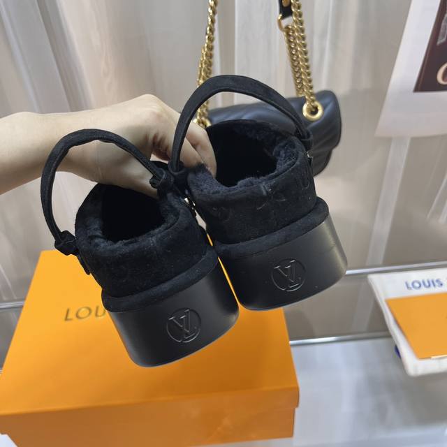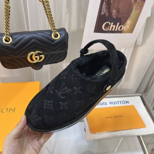 Louisvuitt On Fw23 New Arrival~L V Aspen 水台拖鞋L家 秋冬勃肯毛拖鞋新品经典Monogram老花压印麂皮鞋面,发泡材质,加厚底台舒适度满分 增高效果满分内里皮毛一体羔羊毛Size 35-41
