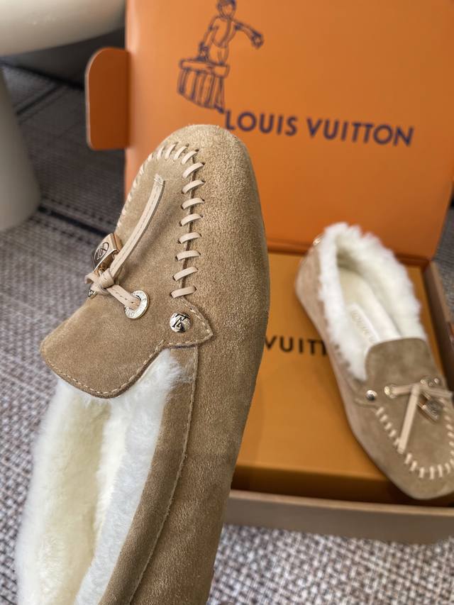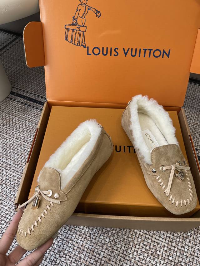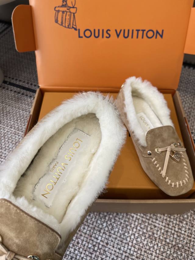Louisvuitton 路易威登 秋冬新品 豆豆鞋 毛毛鞋 超多明星网红种草 非常火的薄底设计元素 简简单单的牛皮拼接加上品牌Logo五金锁扣点缀 非常有辨识度 上脚超级百搭好看 调试无数次楦型 轻柔穿着体验 脚感舒适度拉满 面料原版定制进口头层牛皮 内里真羊毛里 原版开模注塑Tpu 码数: 35-41 40 41定做不退换 DDD