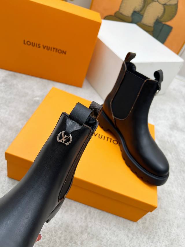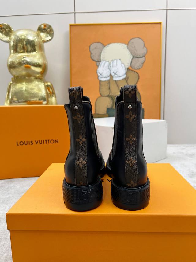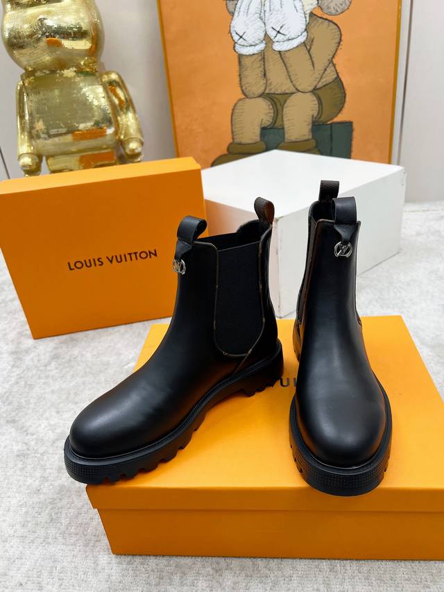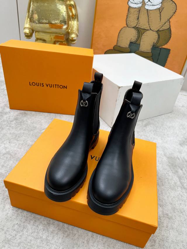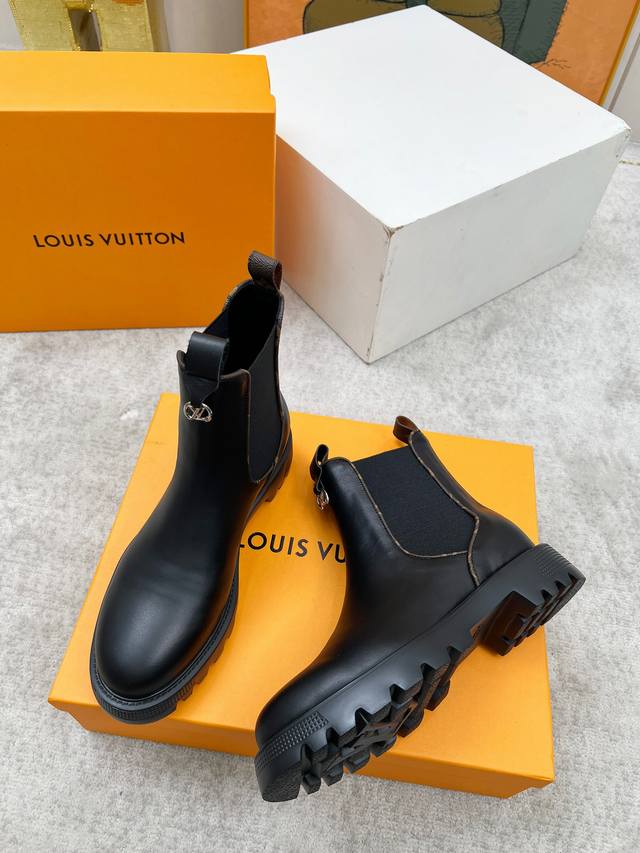 Lous Vuiton 路易威2025官网最新短靴款,官网原版一比一。 Lv Beaubourg 采用小牛皮呈现切尔西风格鞋面,搭配轻盈厚底,更有 Monogr