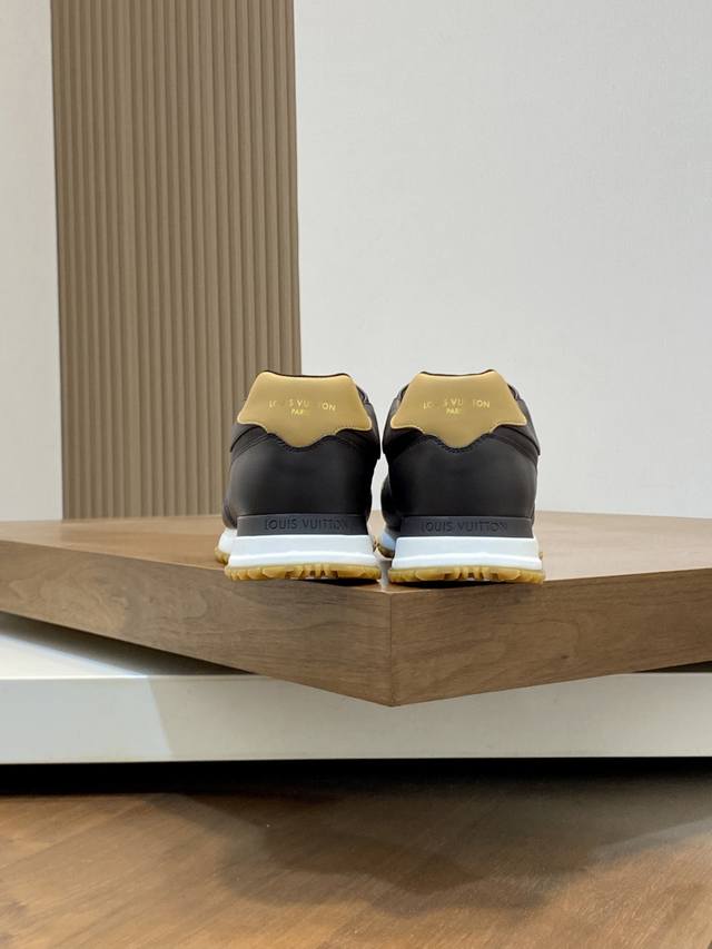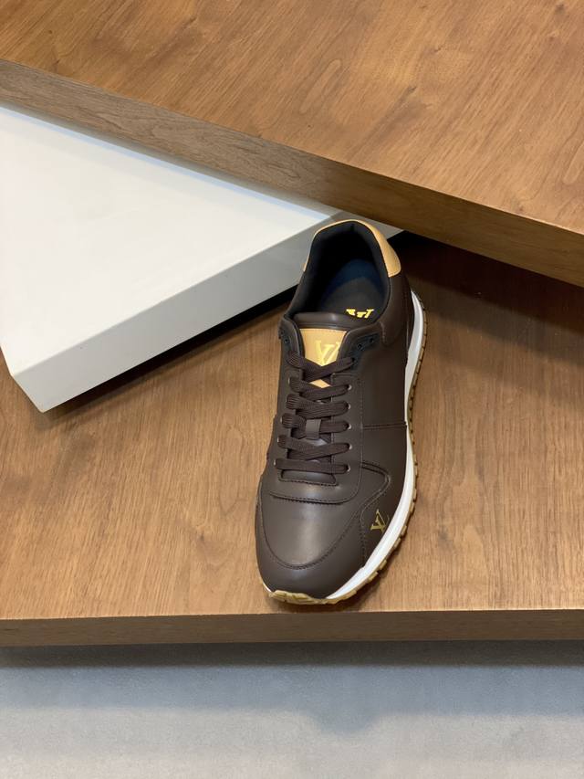 FFF Lv男士鞋履 本款 Run Away运动鞋取材光滑牛皮革。由品牌标志性皮革打造的饰边与侧面耀目 Lv字母一道构筑考究细节。坡跟外底诠释跑鞋的灵感启发。素面牛皮革鞋带 DDD 路易威登元素橡胶外底! DDD 尺码:39-40-41-42-43-44 38.45.46订做 DDD