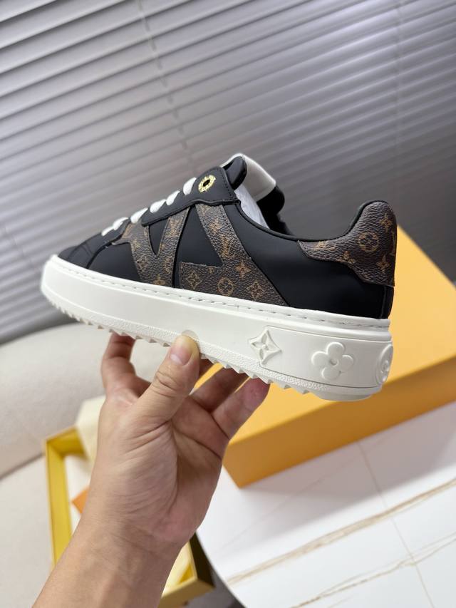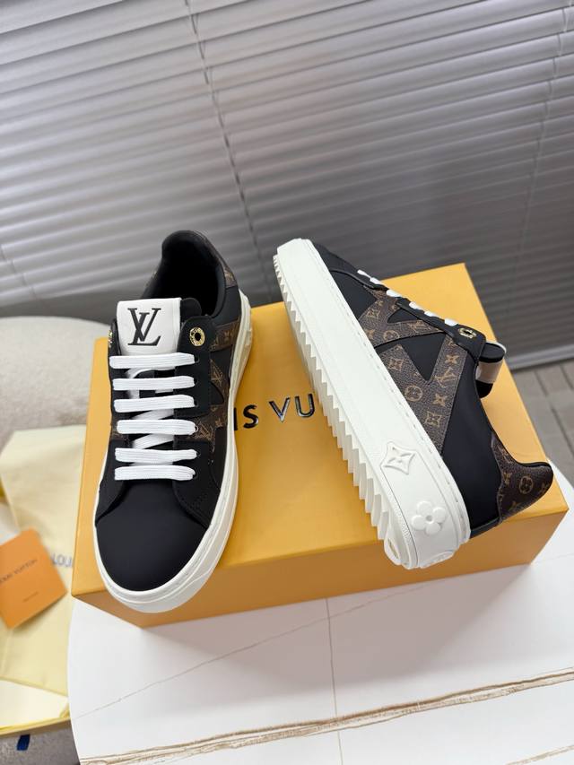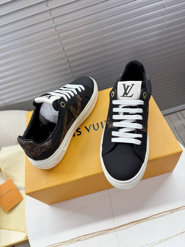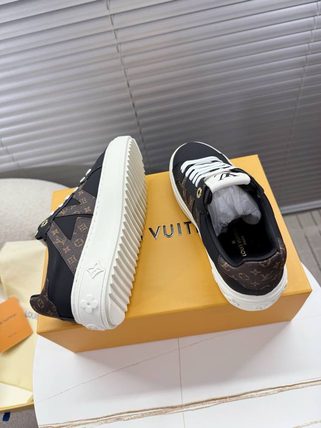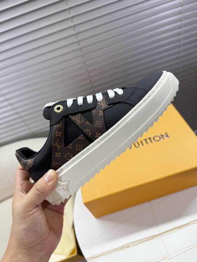 Lv~~经典小白鞋,最火爆新配色 专柜橱窗热卖款,非常立体好看个性的印花 金色,银色,透明胶片 立体印花牛皮面料 牛皮内里 牛皮垫脚 原版套楦工艺 原版金属Logo扣 原版4Cm厚底 原版鞋带 配套包装 35 40正码