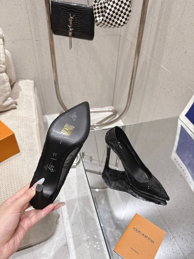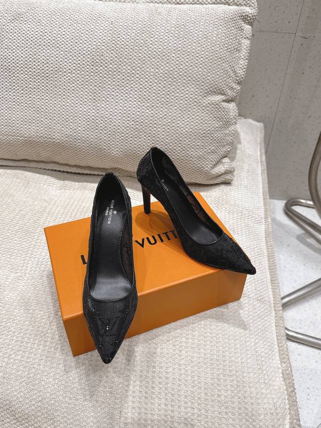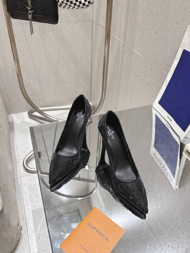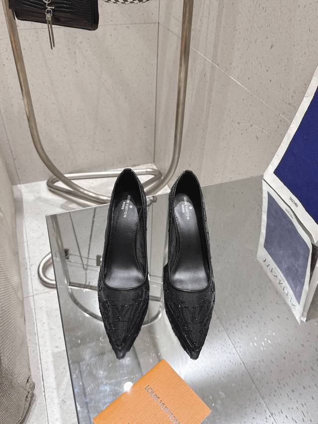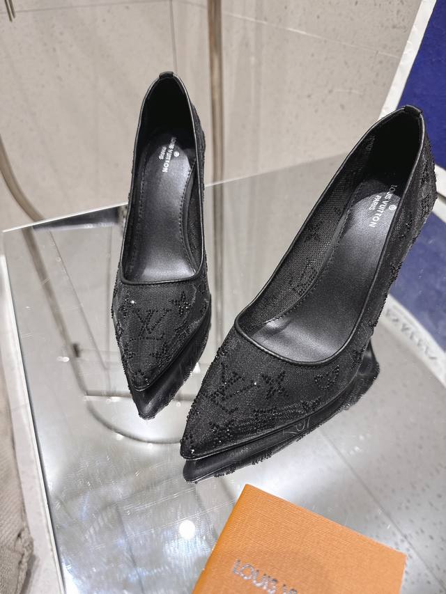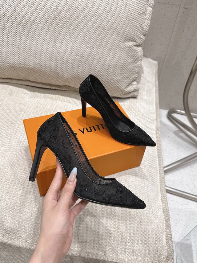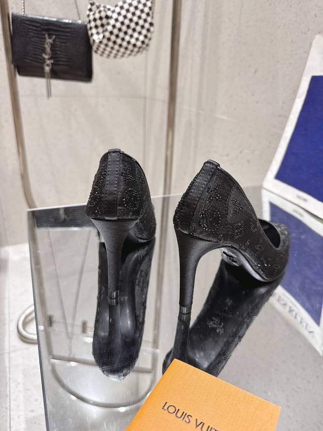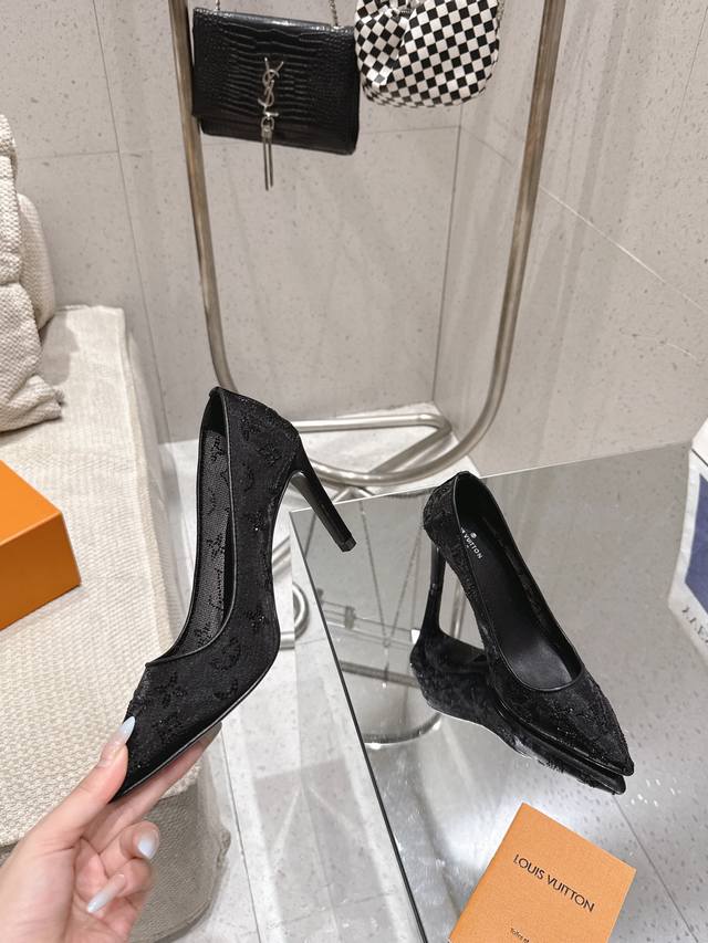 Lv网纱钻单鞋 Loui&Vuitto2025新款 顶级版本 本款 Gala 高跟鞋为网格鞋身刺绣璀璨莱茵石 Monogram 图案,成就适宜夜间出行的雅致之选