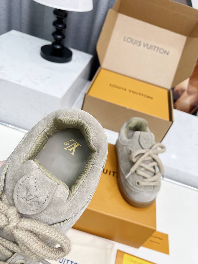 Lv联名Nigo 丑萌鞋 可爱众多网红明星纷纷开秀上脚 , 经典百搭的单品。面料:进口高丝光牛反绒。内里:高级弹力网布,大底:原版开模大底,掌印橡胶外底暗藏L字