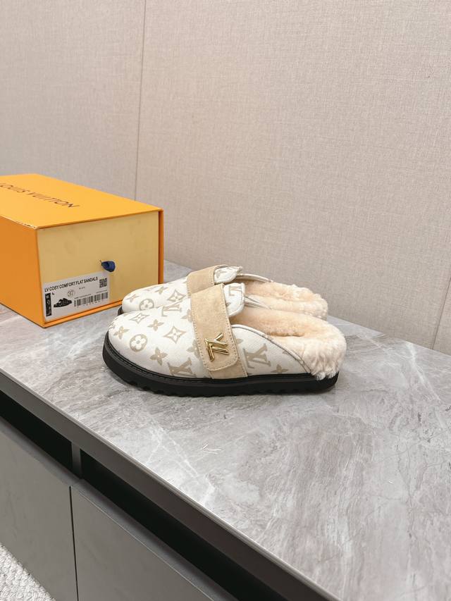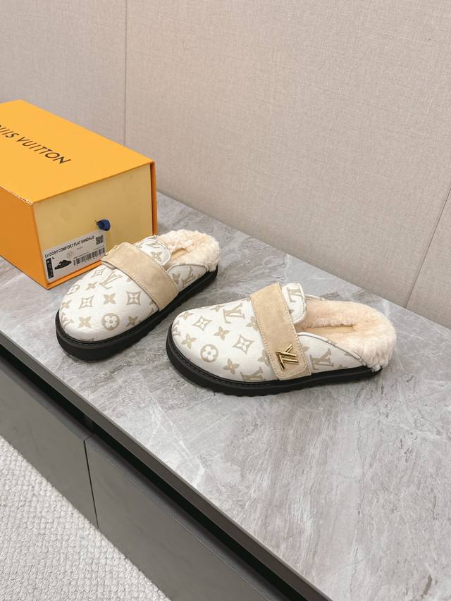 / Lv路易威登最新款秋冬新款纯羊毛拖厚底增高外穿羊毛拖 牛仔布面经典老花纹羊毛拖,小个子必入款 增高显瘦 精致高级 慵懒又不乏高级感,毛茸茸的太可爱了!鞋面、内里