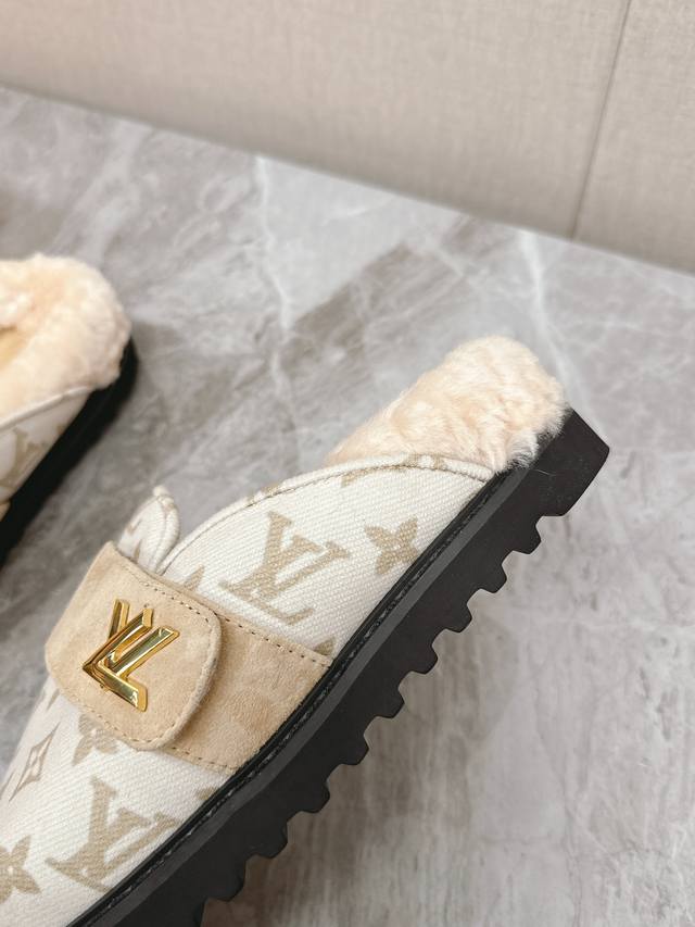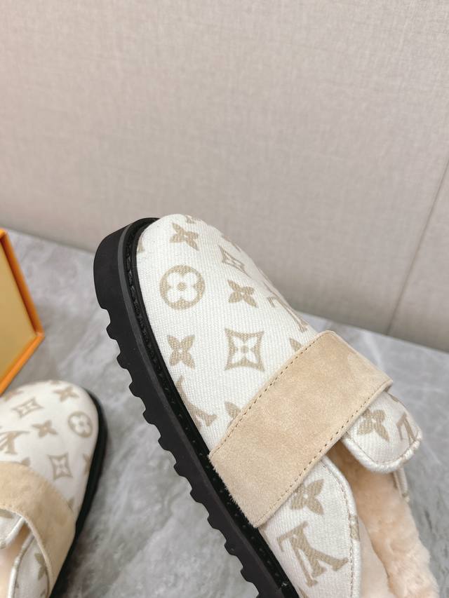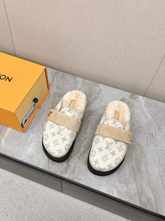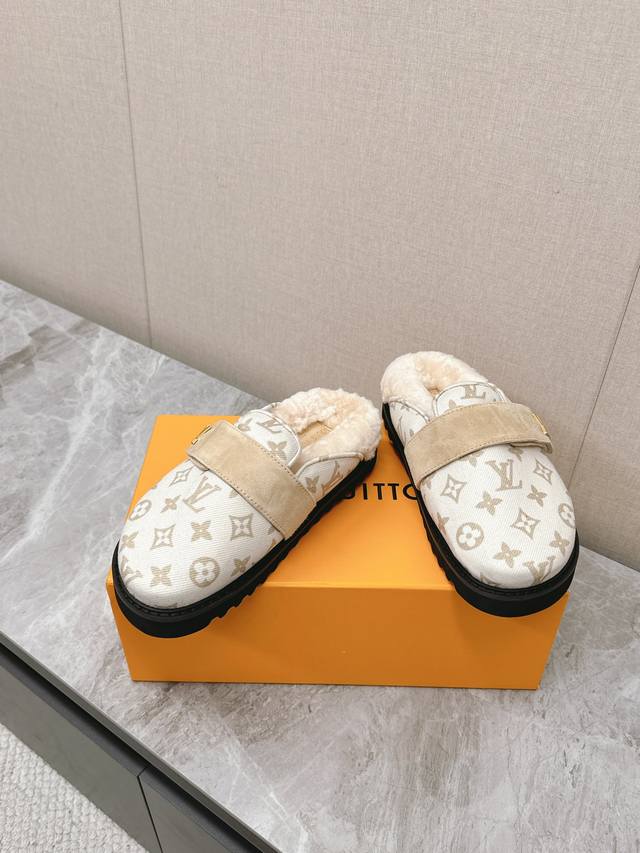 Lv路易威登最新款秋冬新款纯羊毛拖厚底增高外穿羊毛拖 牛仔布面经典老花纹羊毛拖,小个子必入款 增高显瘦 精致高级 慵懒又不乏高级感,毛茸茸的太可爱了!鞋面、内里