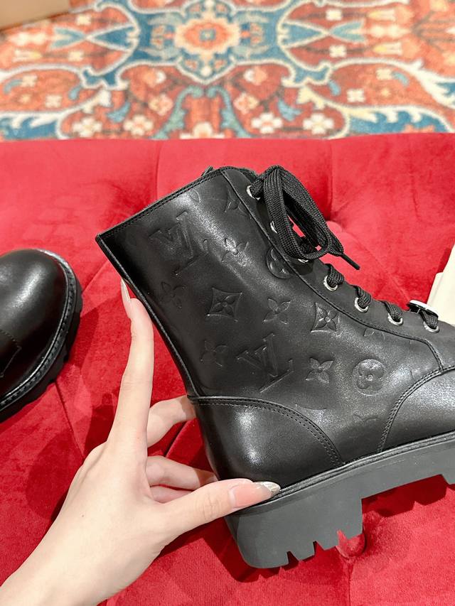 / Lv路易威登 驴牌 L家 Louis Vuitton 及踝靴 马丁靴 系带 短靴 原版购入开发 做货 本款平底靴以光滑牛皮革演绎经典登山靴风范,借 Lv 字母饰