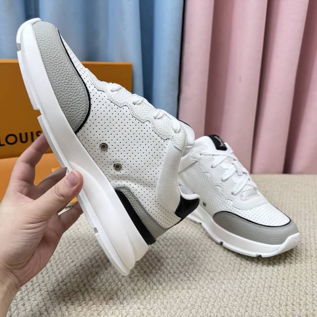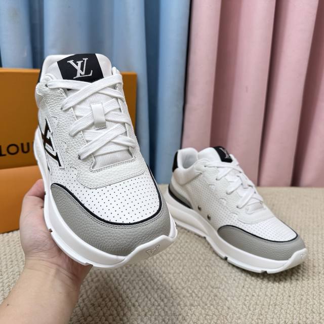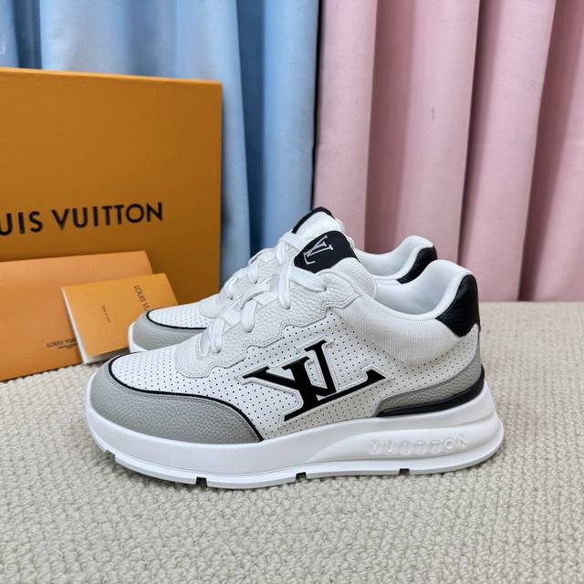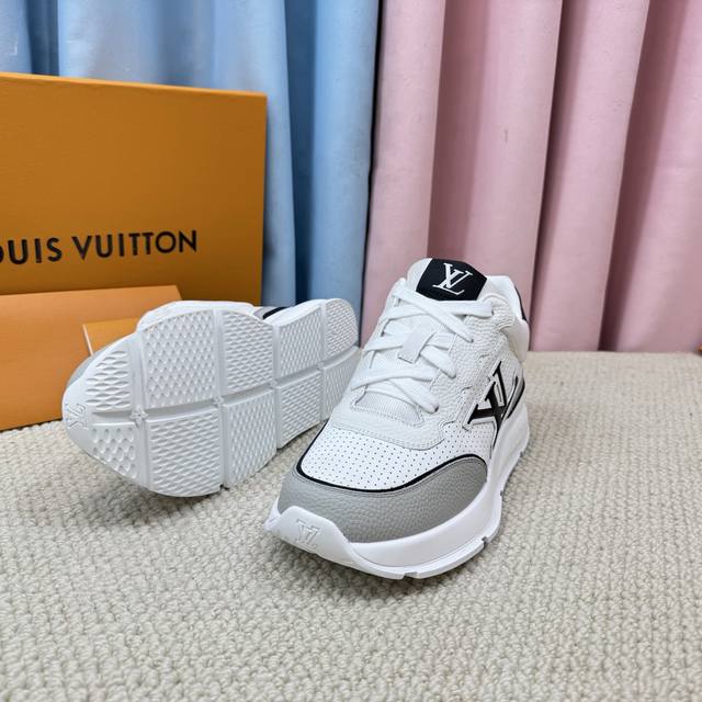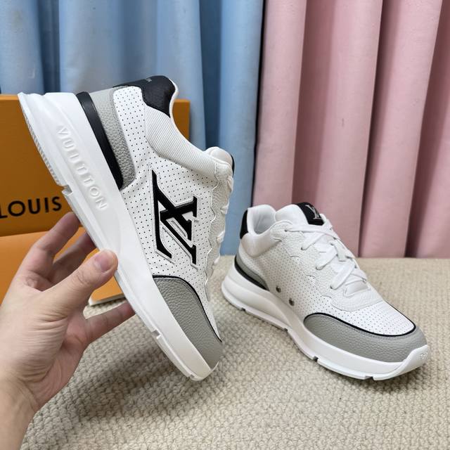Lv-路易-威登 pk市场一切版本 走秀新款 代购品质运动款 原版1:1开发复刻!!上脚非常舒适 做工精细 鞋面由意大利进口小牛皮拼接,侧边饰有品牌Logo标志