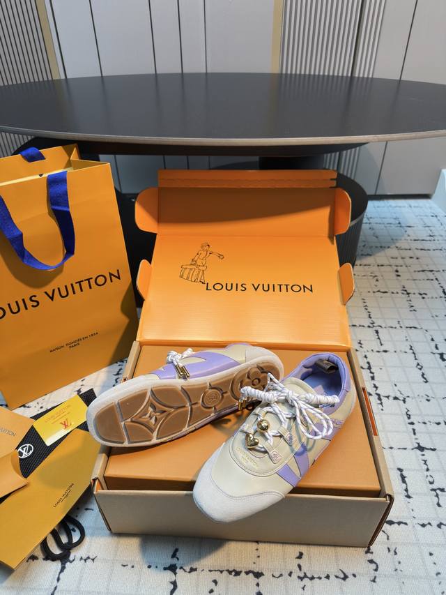 Louis Vuitton 2025春夏走秀高定Run55经典系列果冻色系带休闲运动女跑鞋 Lv 字母Logo厚底拼色老爹鞋 材质:鞋面进口小牛皮 环保透气3D