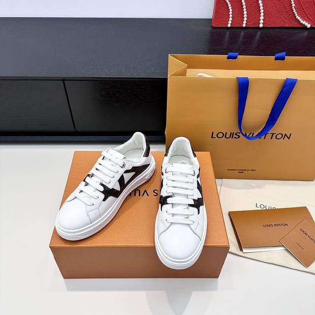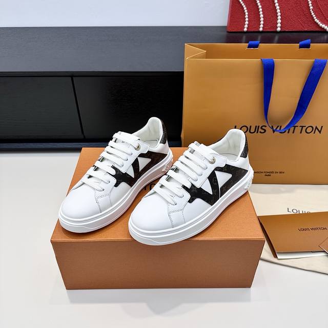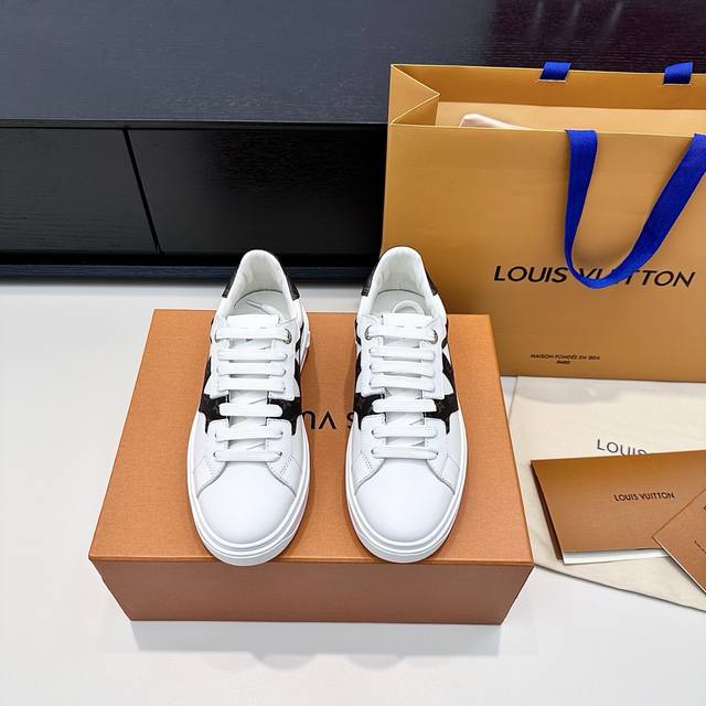 / Lv驴牌 2025年新款 厚底小白鞋运动鞋,白色皮革与老花元素碰撞出别致风格,简约版型中暗藏品牌经典基因。从鞋面设计到鞋底细节,处处彰显奢华质感,无论是搭配休闲