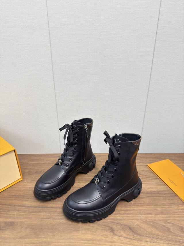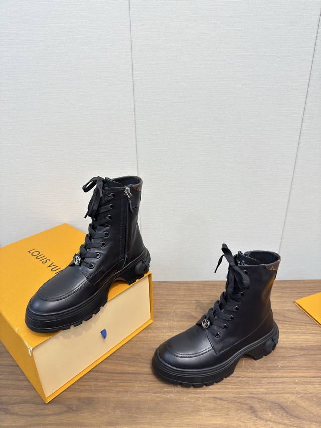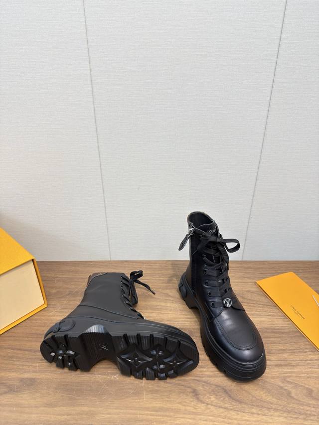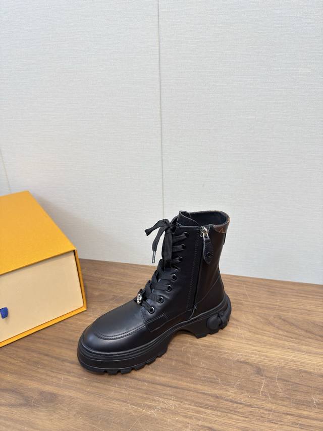Lv驴牌25 秋冬季新款马丁靴 绑带靴系列_ DDD 顶级版本 DDD 网红明星同款,小红书热推。保暖秋冬短靴 DDD 原版细节,超正版型,超级好看,上脚超大气,自带气质,鞋面牛皮复杂工艺拼接,时尚运动风,舒适度特别棒 DDD 面料:定制牛皮羊毛 DDD 内里:牛皮里 DDD 垫脚:牛皮毛垫脚 DDD 大底:原版开模防滑橡胶底 DDD 底厚:约5.5Cm DDD 码数:35-39 40.41定制不退换 DDD 原版包装,手提袋! DDD