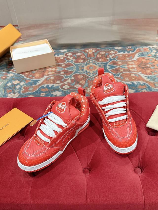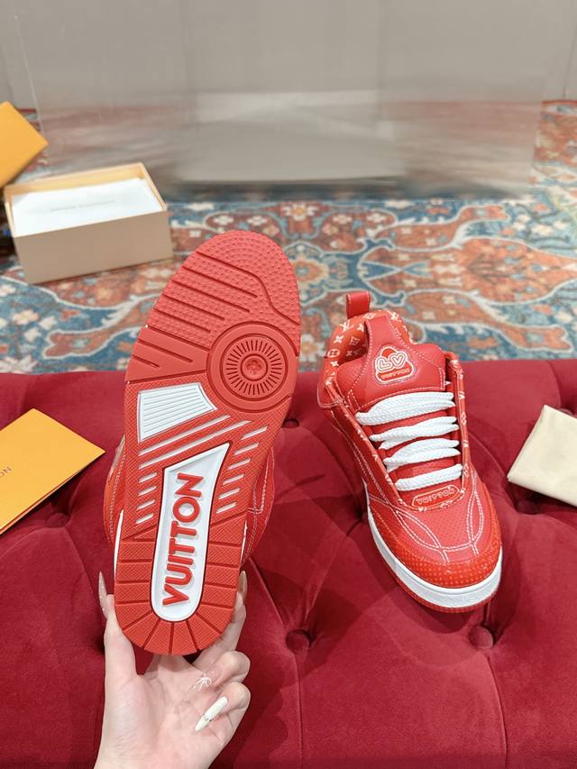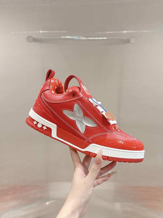 Lv驴牌L家Skate 系列 最新配色 Tariner运动鞋 四叶草 滑板鞋 情侣款 复古篮球鞋 DDD 原版购入开发 做货 本款 Lv Skate 运动鞋以缤纷细节点缀粒面牛皮革鞋身,呼应当季皮具与成衣系列。运动鞋侧面绽放渐变 Monogram 花卉。加衬鞋舌与 Mini Monogram 织物内衬衣领展现 1990 年代滑板鞋的灵感启发 DDD 面料:原版定制头层牛皮 DDD 内里:进口透气网里 DDD 鞋底:原版开模防滑Tpu材质 DDD 底厚:3.5Cm DDD Size:女35-40 男39-4