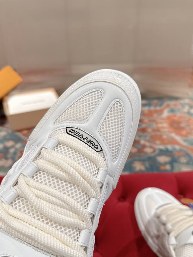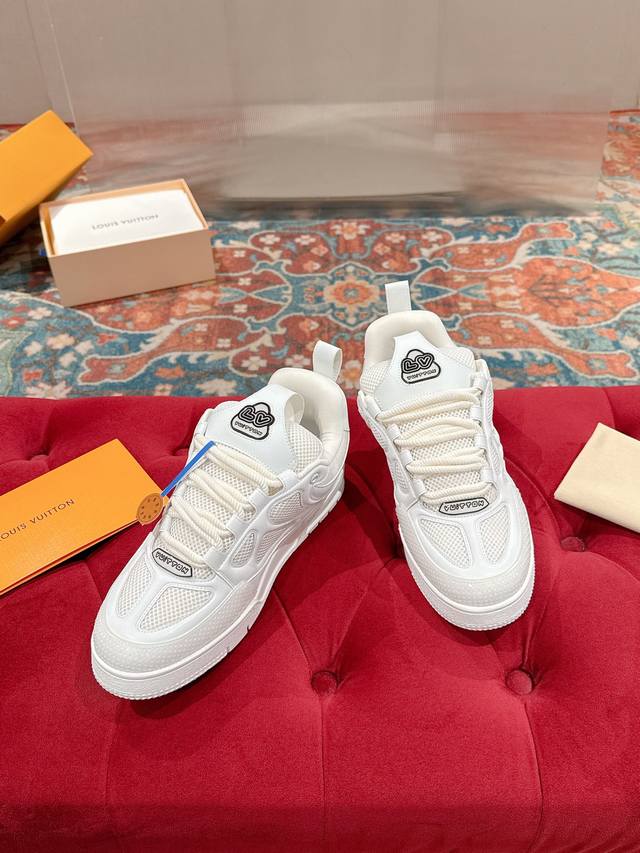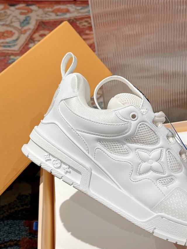 Lv驴牌L家Skate 系列 最新配色 Tariner运动鞋 四叶草 滑板鞋 情侣款 复古篮球鞋 Ddd 原版购入开发 做货 本款 Lv Skate 运动鞋以缤纷细节点缀粒面牛皮革鞋身,呼应当季皮具与成衣系列。运动鞋侧面绽放渐变 Monogram 花卉。加衬鞋舌与 Mini Monogram 织物内衬衣领展现 1990 年代滑板鞋的灵感启发 Ddd 面料:原版定制头层牛皮 Ddd 内里:进口透气网里 Ddd 鞋底:原版开模防滑Tpu材质 Ddd 底厚:3.5Cm Ddd Size:女35-40 男39-4