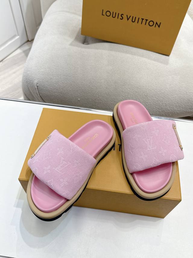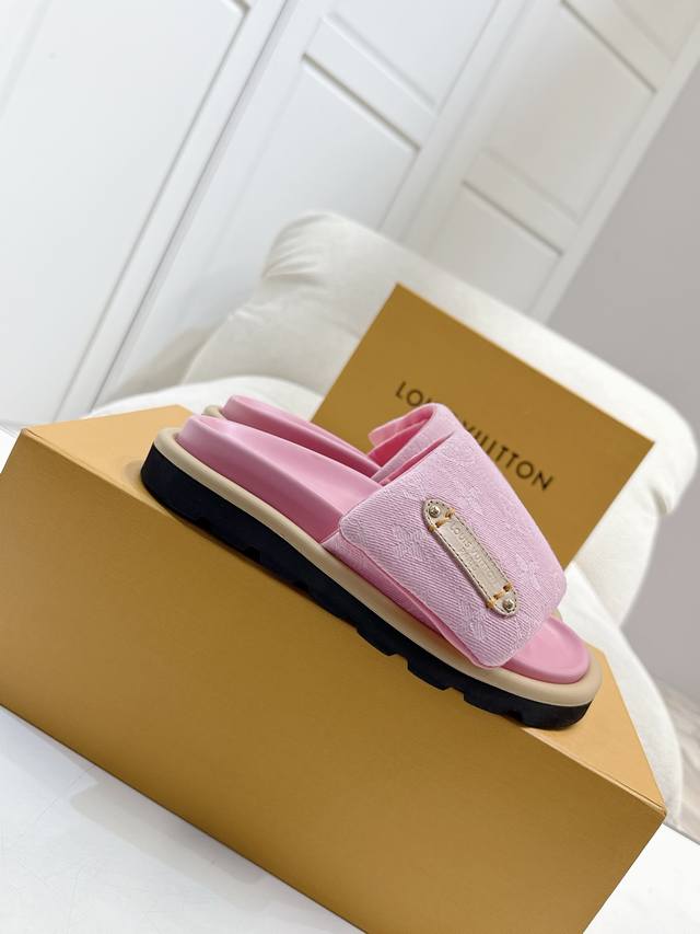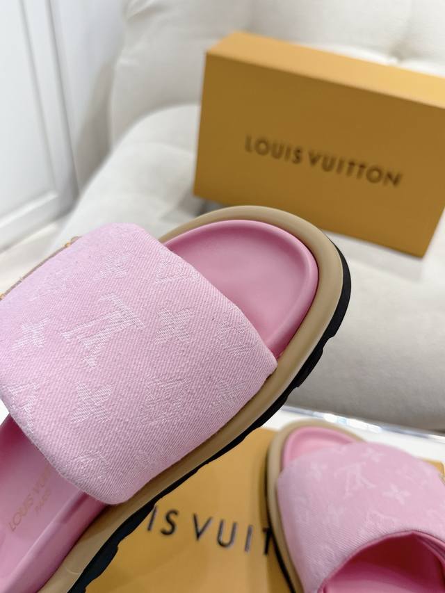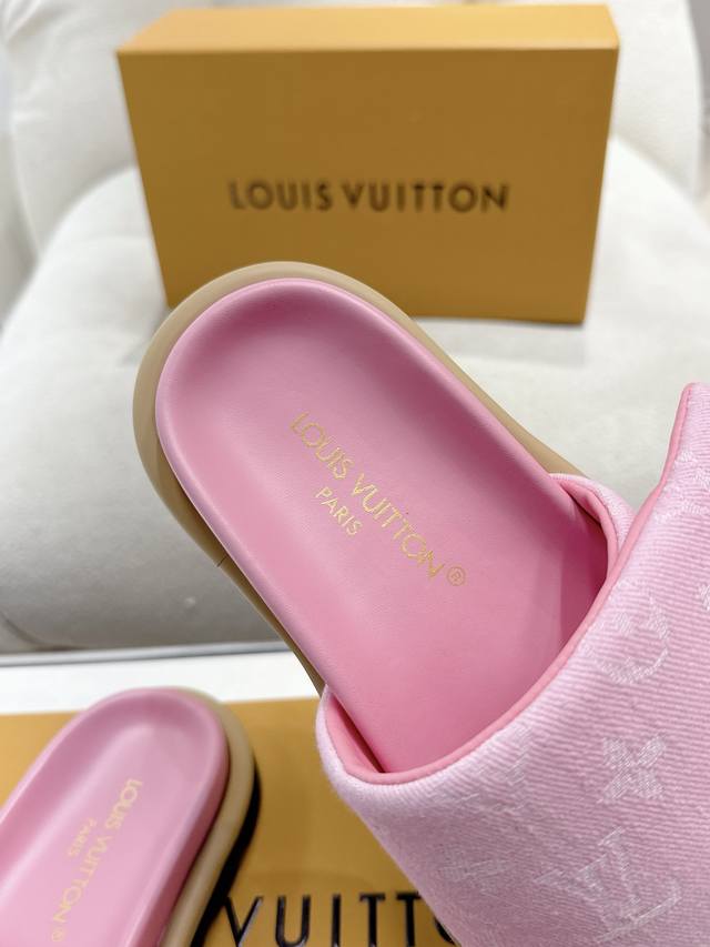 Lv 情侣款专柜主打最新款牛仔拖鞋硬货上新 代购级别!高级感十足!国内外博主刷爆的一款,复古又时髦 上脚美炸了!官网主推款 鞋面:高定制牛仔印花布料 内里: 进