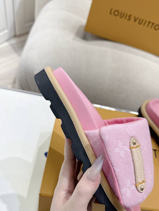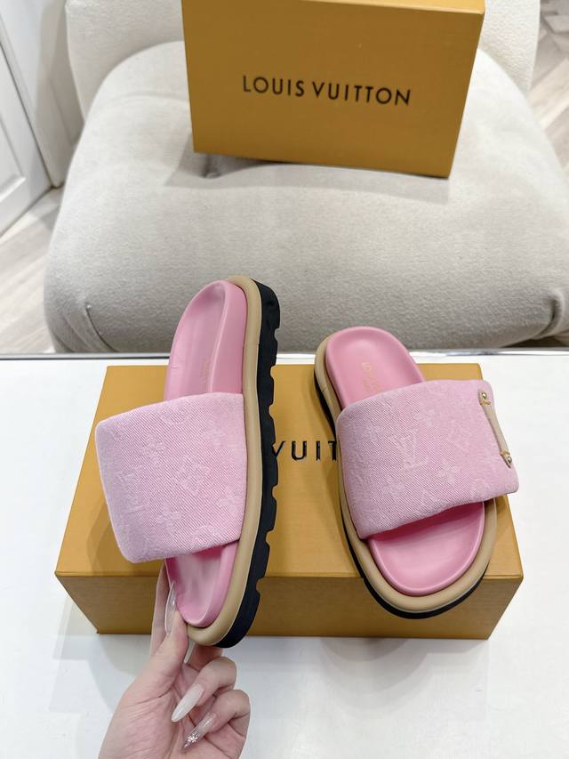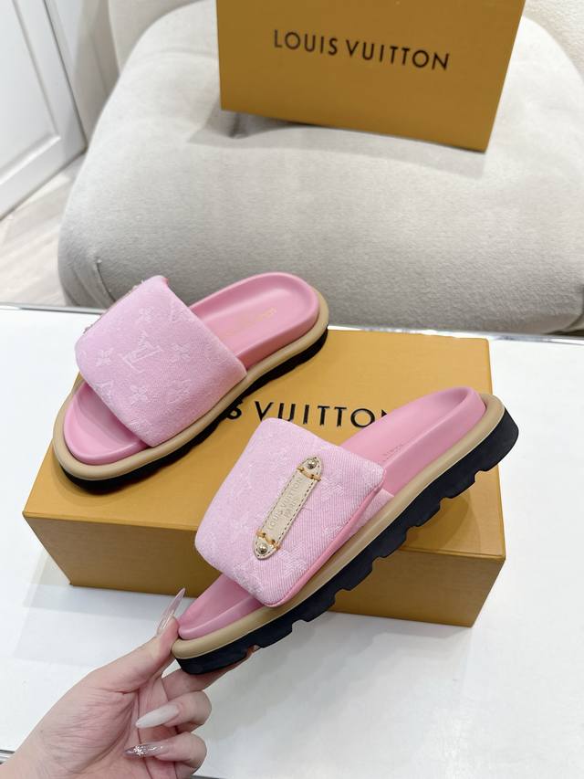 / Lv 情侣款专柜主打最新款牛仔拖鞋硬货上新 代购级别!高级感十足!国内外博主刷爆的一款,复古又时髦 上脚美炸了!官网主推款 鞋面:高定制牛仔印花布料 内里: 进