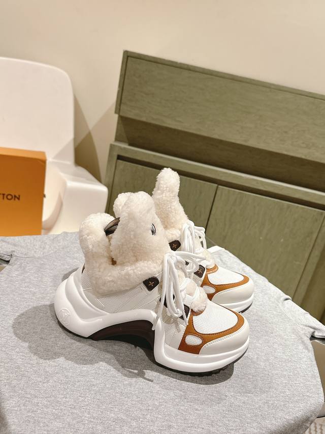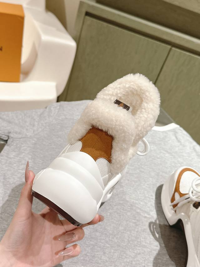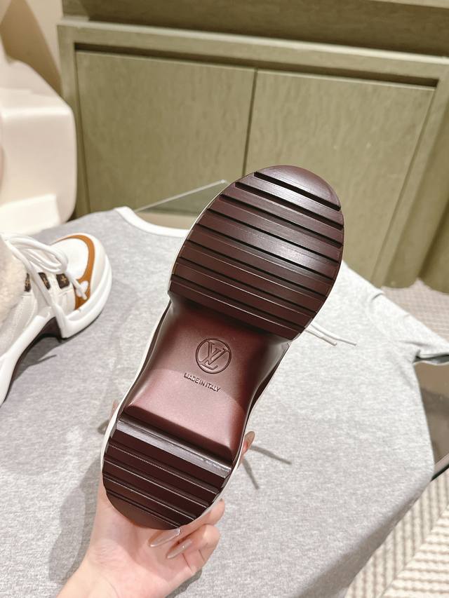 / Lv 拱桥运动鞋~专柜同步羊毛里保暖神器鞋面:原版一致牛皮,羊毛内里!耐穿耐磨 大底:原版开模Tpu,减震耐磨,回弹力超好,上脚巨显瘦。轻盈舒适!增高6.5Cm