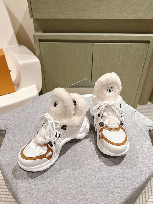 Lv 拱桥运动鞋~专柜同步羊毛里保暖神器鞋面:原版一致牛皮,羊毛内里!耐穿耐磨 大底:原版开模Tpu,减震耐磨,回弹力超好,上脚巨显瘦。轻盈舒适!增高6.5Cm