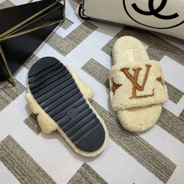 Lv 新款泰迪毛拖上新色 驴家超级爆款,羔羊毛毛拖。 今年大热的毛拖元素,各大品牌都相继出了,驴家肯定不能不入,关键是上脚太好看了,尽显大长腿,时尚百搭款毛拖蹦迪家居外出都可以穿,完全不挑地方的一款!鞋底是原版开模的防滑大底,非常好穿不打滑,而且鞋底有一定厚度,舒适度极佳! Size:35-41 40.41不退换