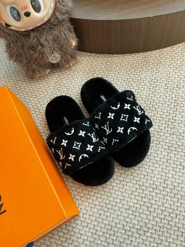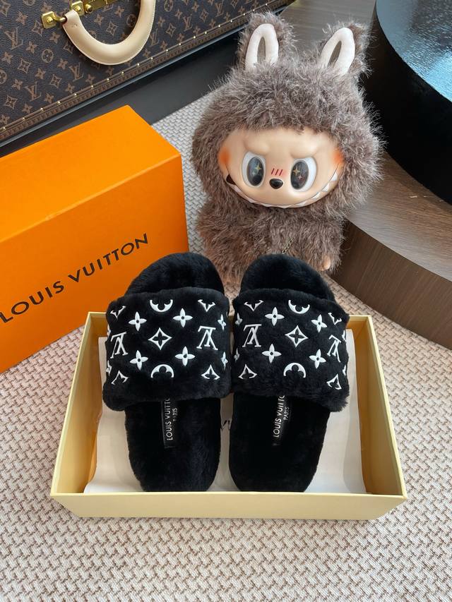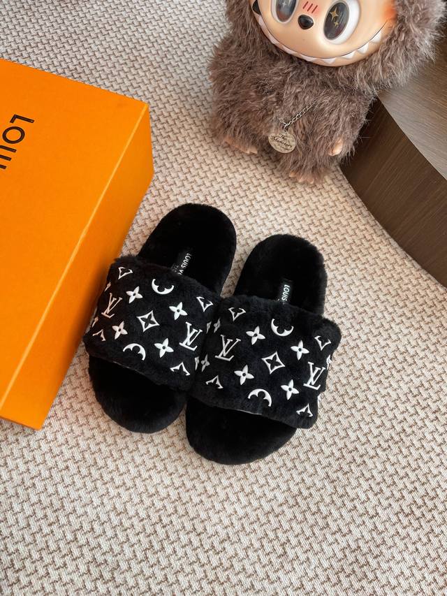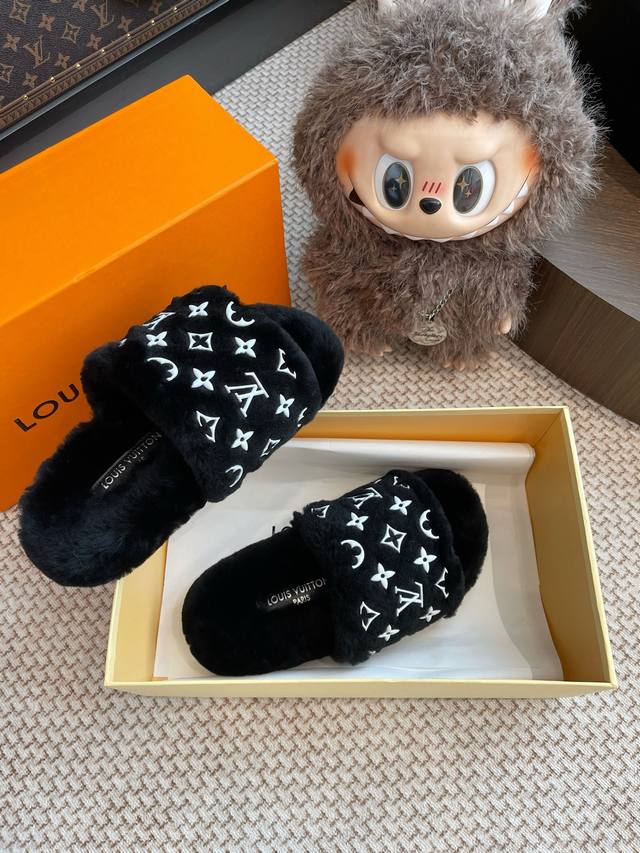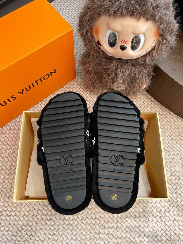 Lv 毛拖鞋整双鞋子采购Zp开发打造,全部定制材料,独家开模大底,细节全部对版出货,连包装也做到跟正品一样。码数:女35-40