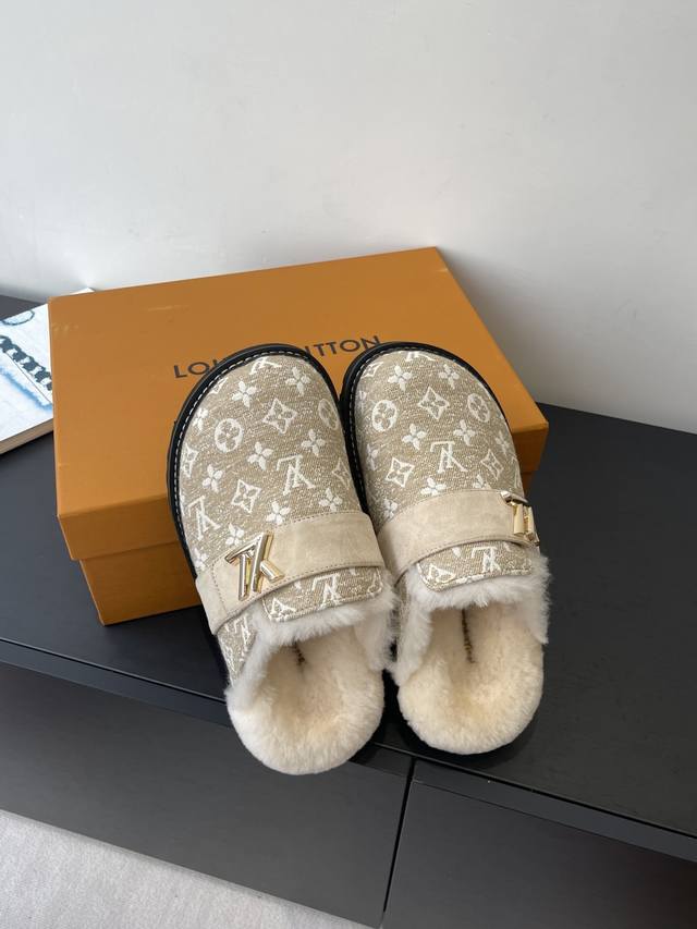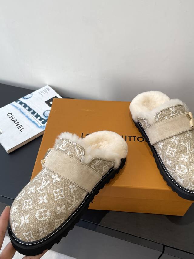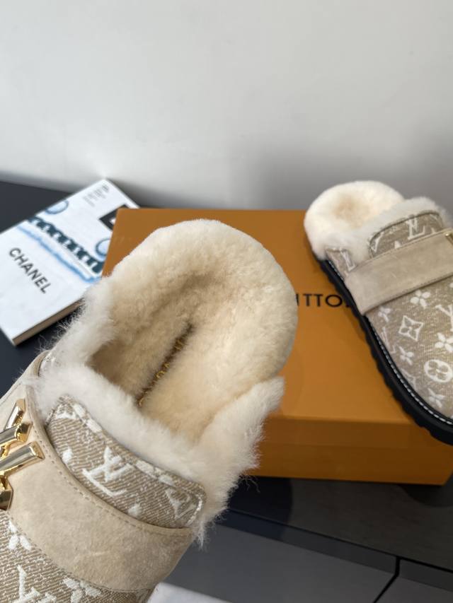 Lv 秋冬 羊毛半拖鞋 勃肯鞋型体 把时髦想要的元素融为一体 DDD 鞋面用皮条纯手工缝制,彰显手工作品的魅力 DDD 内里皮毛一体材质 穿起来不要太舒服呀 配个袜子穿 鞋底发泡材质的 脚感轻盈舒适 DDD 码数:35-40 40 订做 DDD