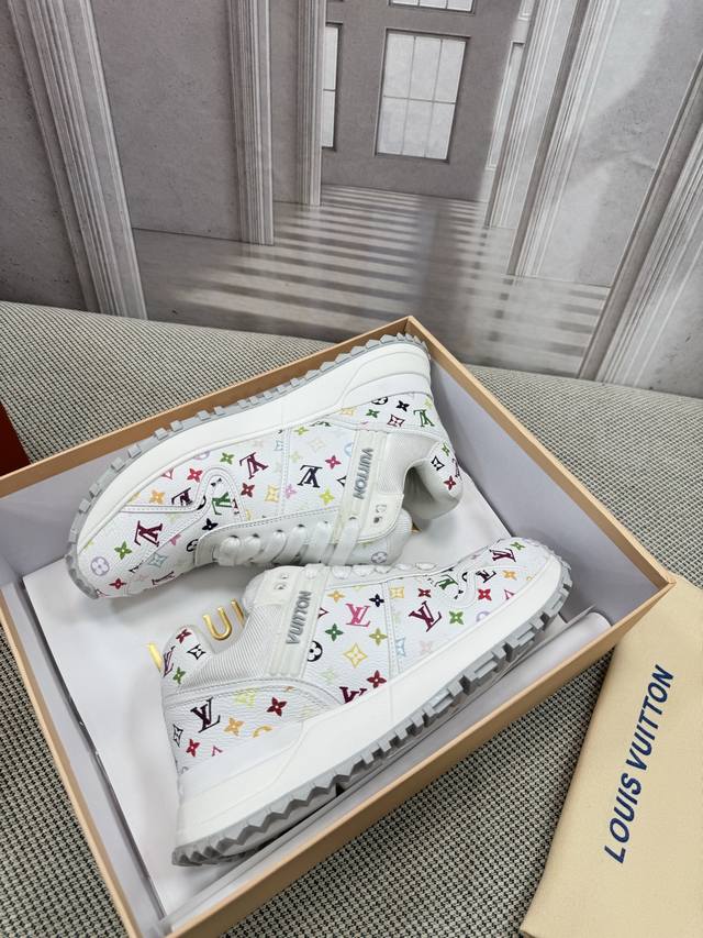 / Lv 路易威登官网同步 顶级版本 经典爆款休闲运动鞋,男款 一比一开模,实体疯卖爆款, 面料:头层牛反绒皮+原版品牌老花+透气网, 内里:牛皮里 垫脚 大底:原