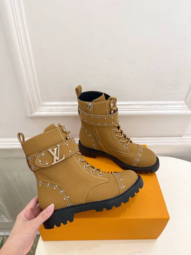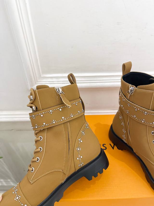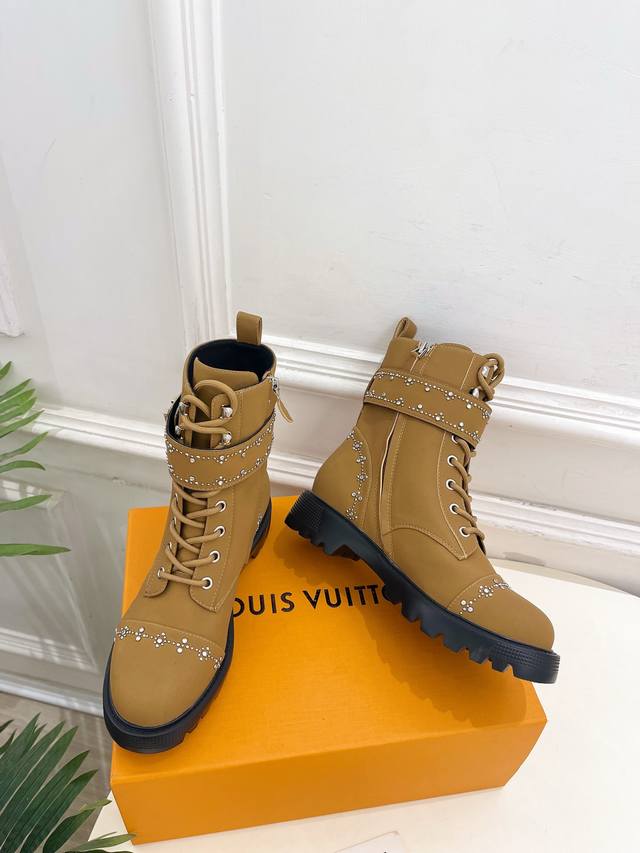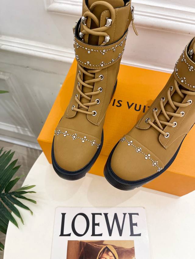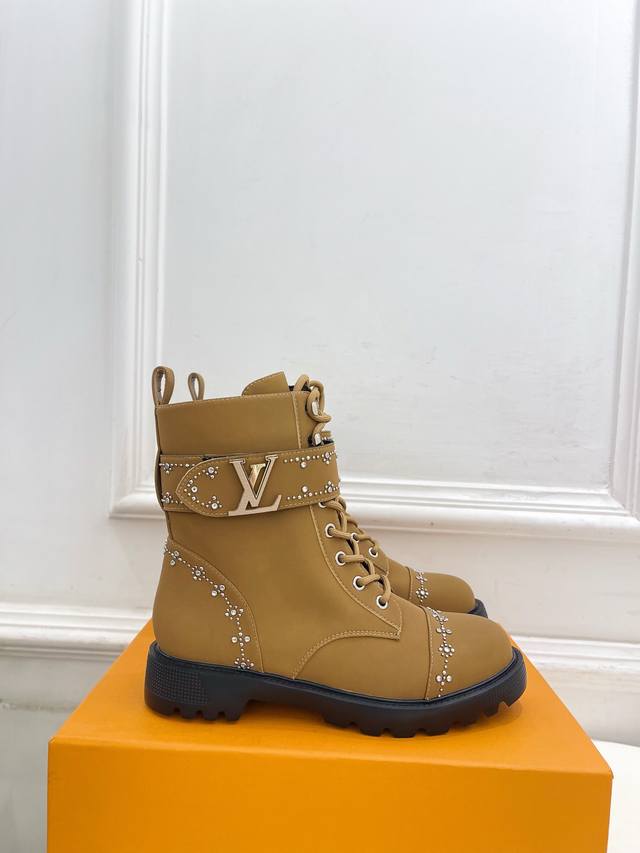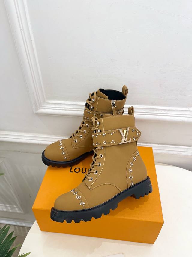 Lv 路易威登 25 2025秋冬新品 顶级版本 专柜主打最新款 水钻鉚钉Lv皮带扣马丁靴 硬货上新 Bs代购级别!高级感十足!国内外博主刷爆的一款,复古又时髦