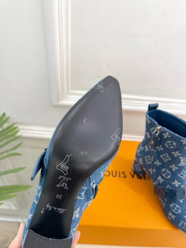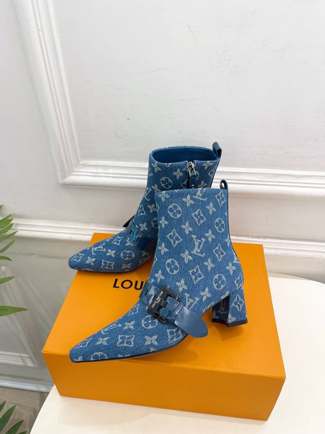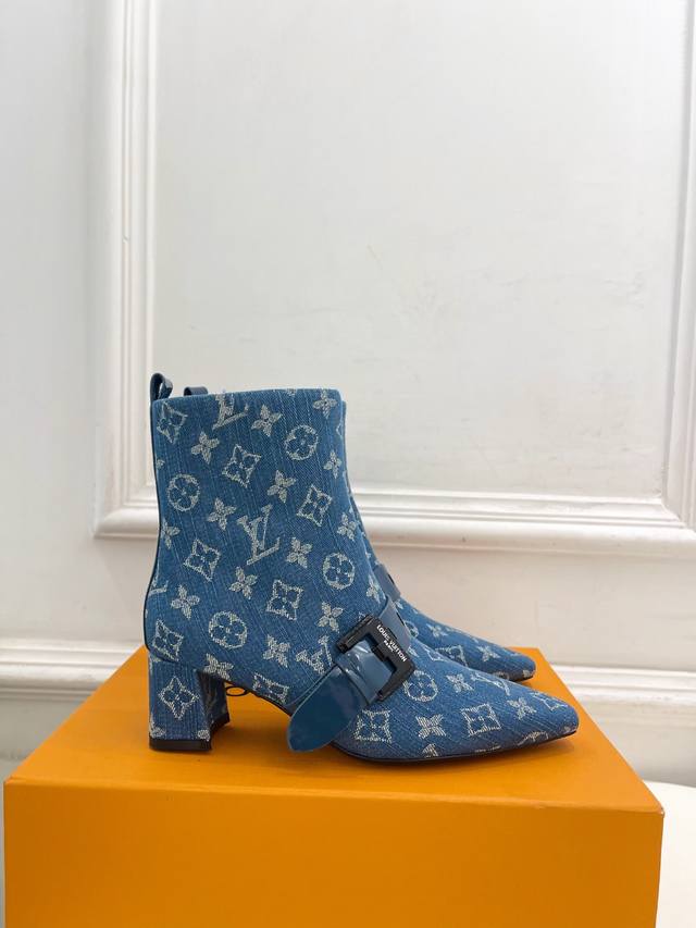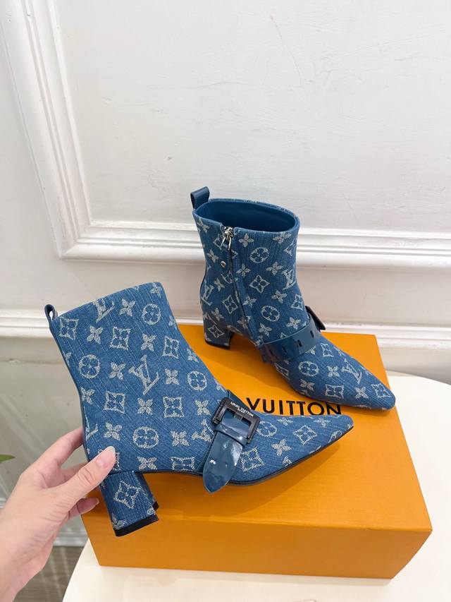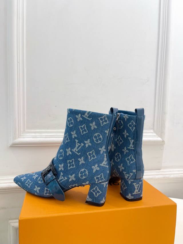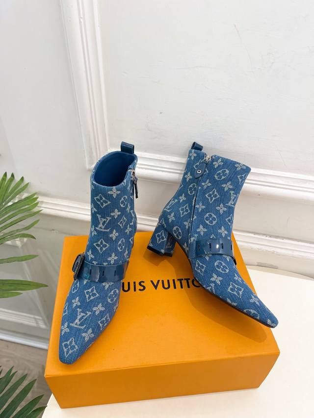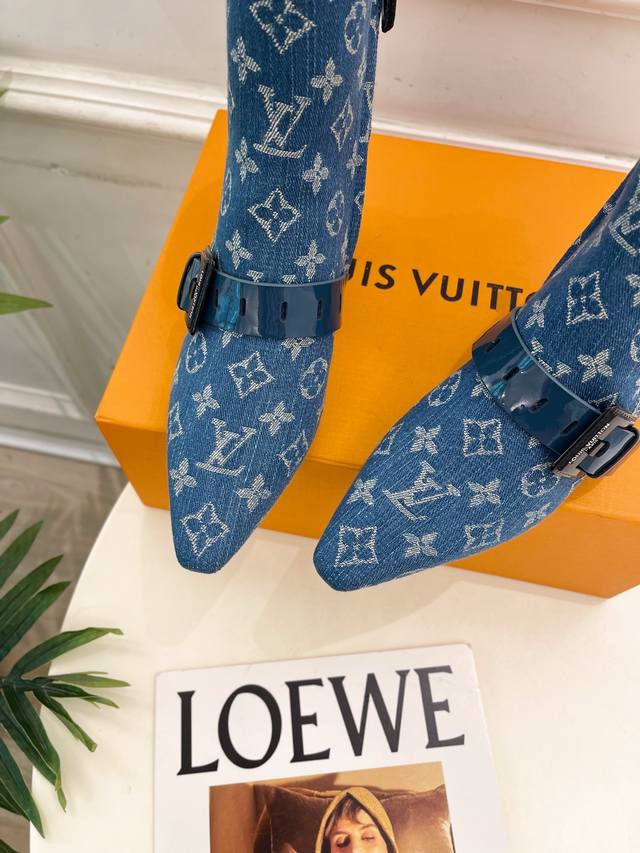 Lv 路易威登 25 2025 秋冬新款 顶级版本原版一致 专柜主打最新款 Fusee 方形搭扣侧拉链及裸靴 硬货上新 Bs代购级别!高级感十足!国内外博主刷爆的一款,复古又时髦 上脚美炸了!官网主推款★ T 鞋面:高定制开边珠牛皮 老花 牛仔布 内里:进口山羊皮里 大底:原版意大利真皮大底 跟高: 5Cm 鞋码: 35-39 34.40.41定制不退换 出厂价Pp:短靴530开边珠