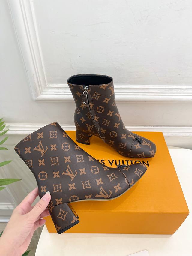 / Lv 路易威登 25 2025 秋冬新款 顶级版本原版一致 专柜主打最新款 Swing V形镂空方跟短靴 硬货上新 Bs代购级别!高级感十足!国内外博主刷爆的一
