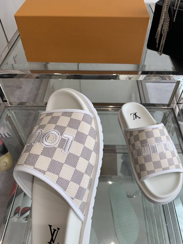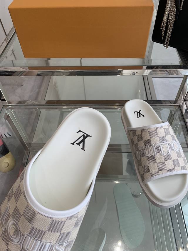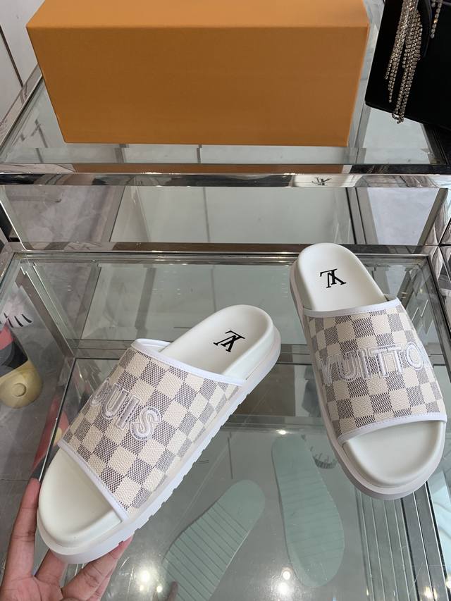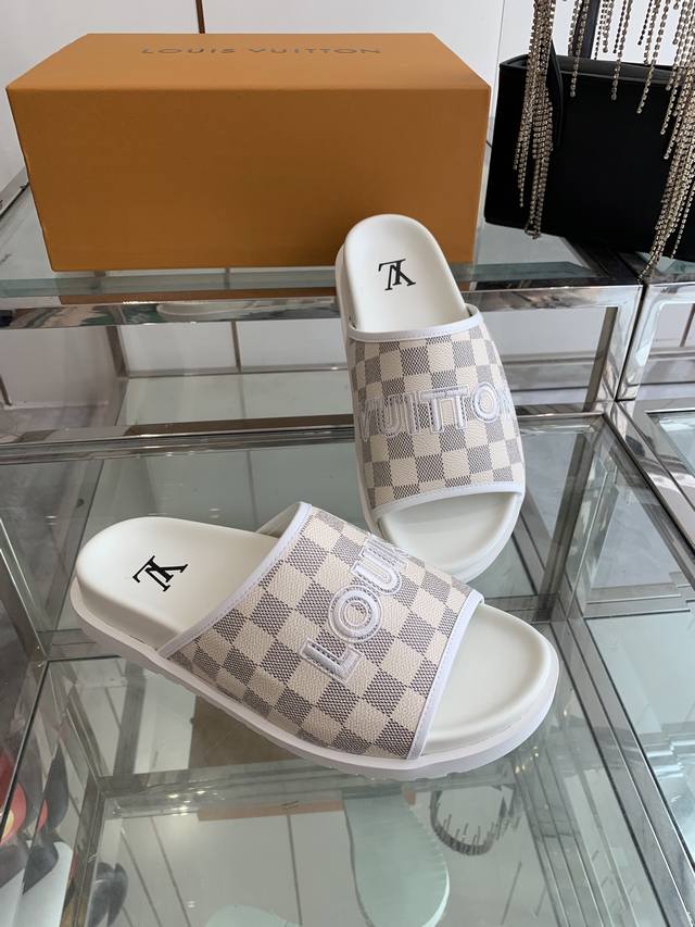 Lv 路易威登 25Ss春夏新品拖鞋 专柜主打最新款 硬货上新 代购级别 高级感十足 国内外博主刷爆的一款 复古又时髦 上脚美炸了 官网主推款 春夏必备 鞋面 原版特定面料内里 进口混种羊皮 原版开模发泡大底 码数:35-46 女40 41 男45 46订做