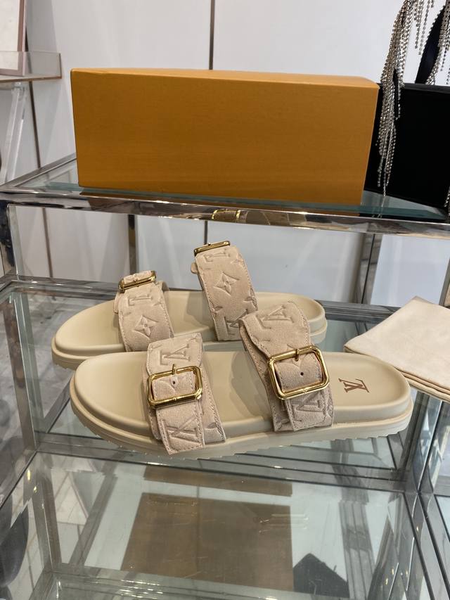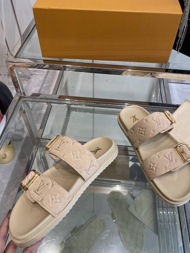 louis Vuitton路易威登春夏新款拖鞋火爆上市 1:1高级定制 秒杀一切仿品 原版开模Logo装饰 既时尚又美观 面料:进口压花丝绸面料...