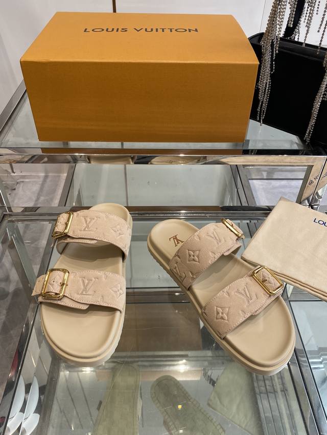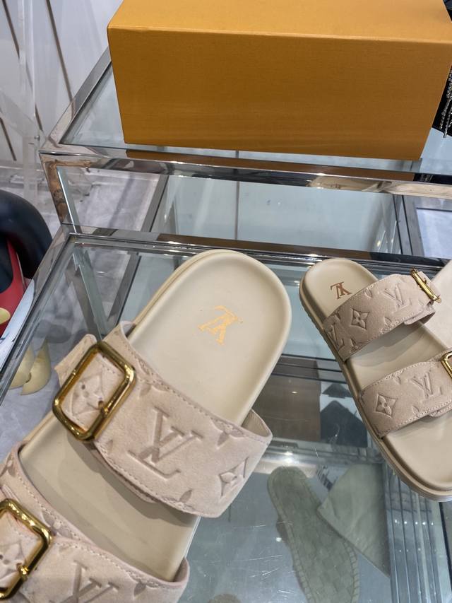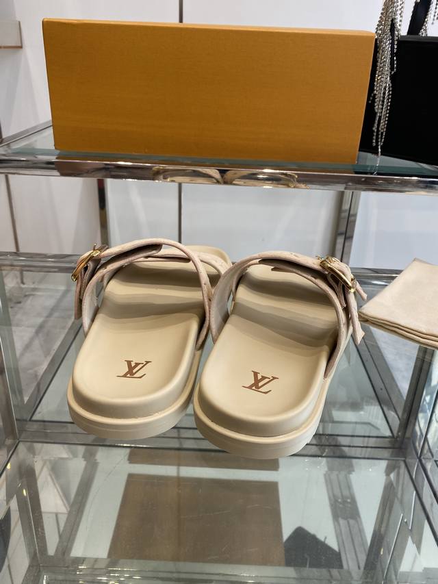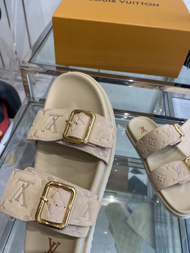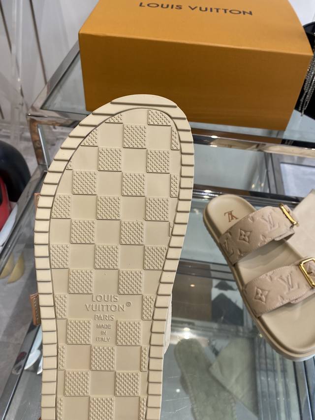 Lv 路易威登 Venice系列 厚底 凉拖鞋 原版购入开发 做货 本款 Lv Venice 凉拖为粒面牛皮革融入标志性 Monogram 压纹,巧妙演绎闲雅格