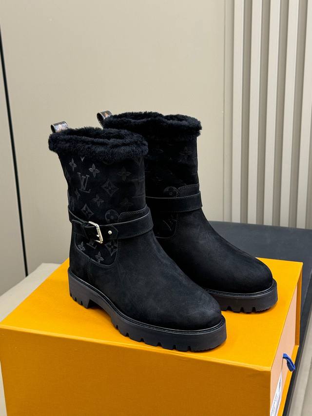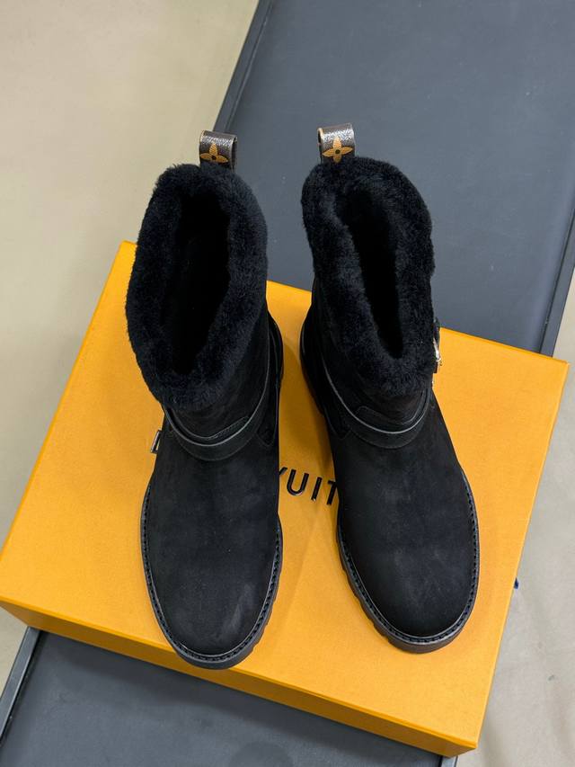 Lv Fw25 New Arrival-~ DDD Lv 驴牌25秋冬羊皮毛一体雪地靴靴子 DDD 鞋面是磨砂牛皮,质地细腻,质感超好! DDD 靴筒压印老花、很是好看 DDD 内里皮毛一体材质! 不挑脚型,温暖过冬 DDD Size 35-41 DDD