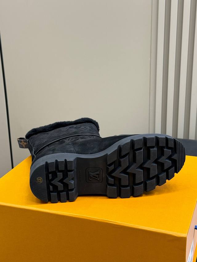 / Lv Fw25 New Arrival-~ Lv 驴牌25秋冬羊皮毛一体雪地靴靴子 鞋面是磨砂牛皮,质地细腻,质感超好! 靴筒压印老花、很是好看 内里皮毛一体材