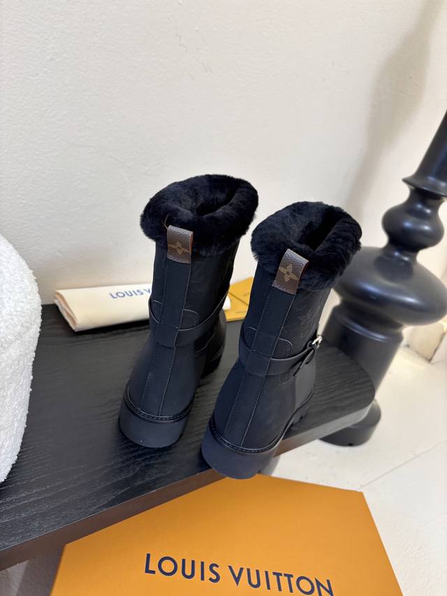 Lv Fw25 New Arrival-~ Lv 25秋冬皮毛一体靴子 鞋面是磨砂牛皮,质地细腻,质感超好! 靴筒压印老花、很是好看 内里皮毛一体材质! 不挑脚