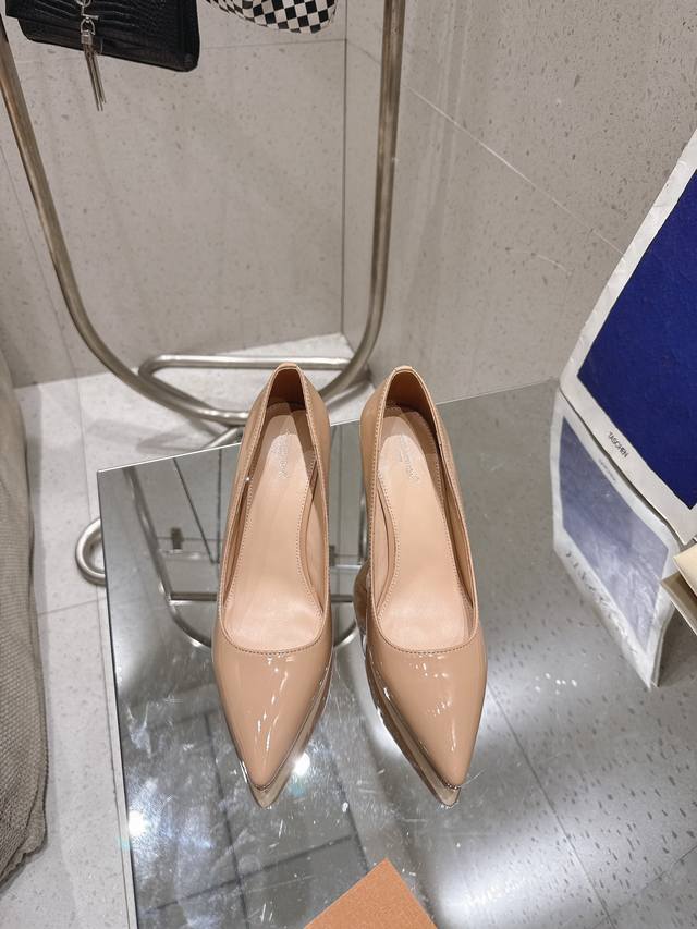 Lv Gala单鞋 Loui&Vuitto30早春新款 顶级版本 本款 Gala 高跟鞋选用漆面 鹿皮绒牛皮革,以细腻亮泽烘托柔美风姿。尖头设计与低帮剪裁塑造标