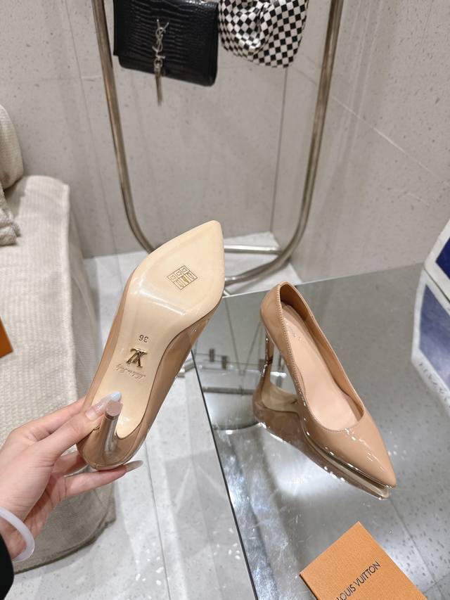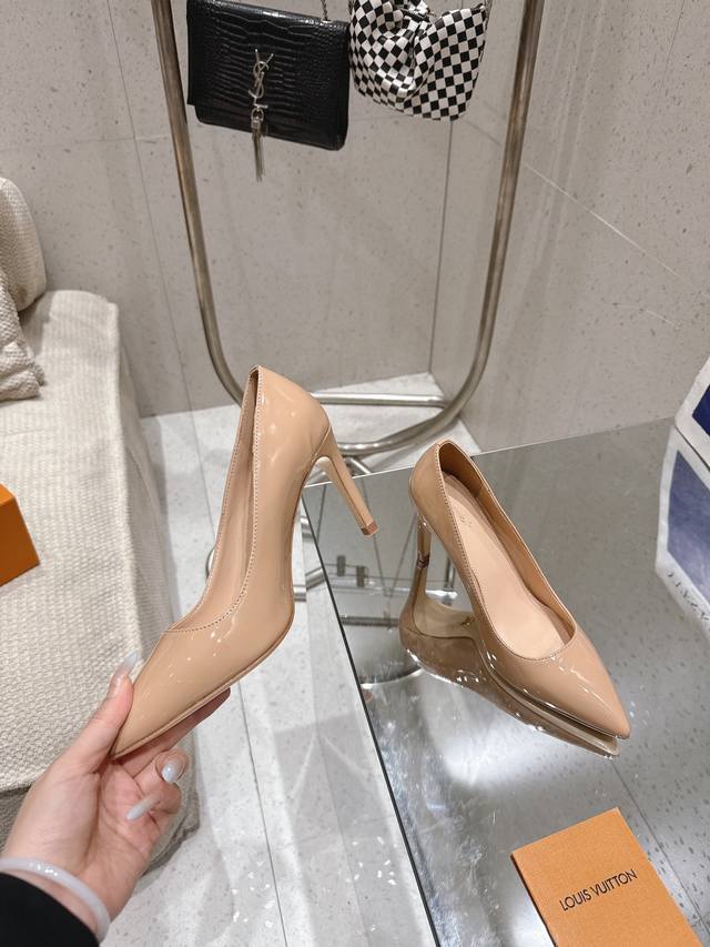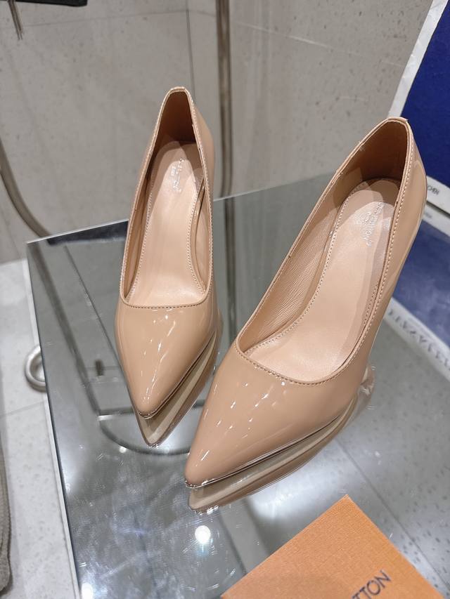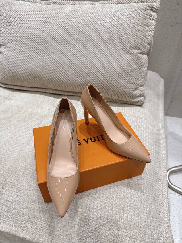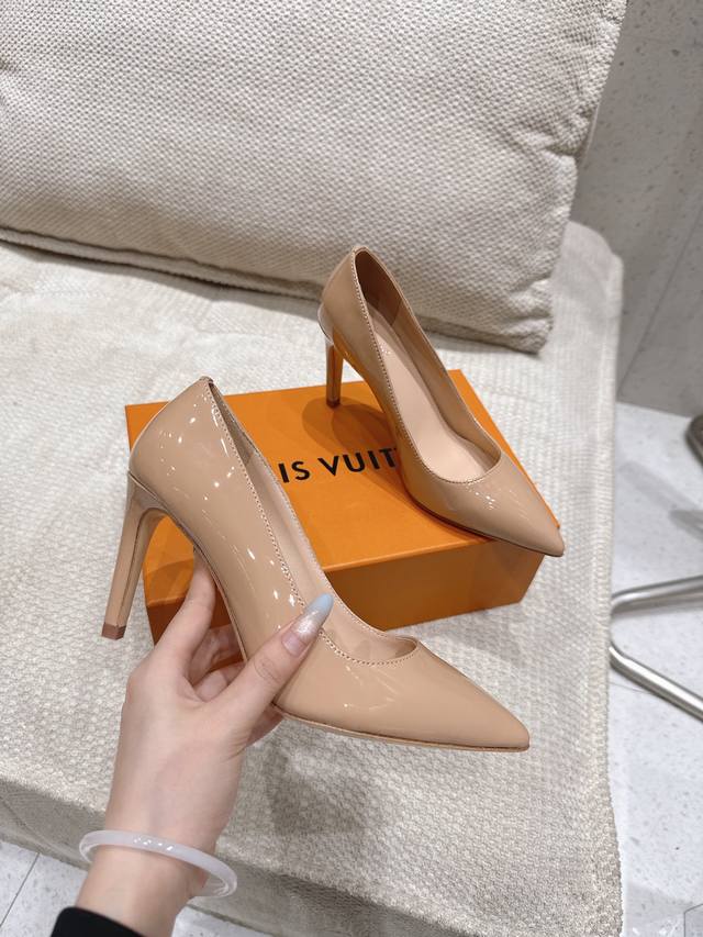 Lv Gala单鞋 DDD Loui&Vuitto30早春新款 顶级版本 DDD 本款 Gala 高跟鞋选用漆面 鹿皮绒牛皮革,以细腻亮泽烘托柔美风姿。尖头设计与低帮剪裁塑造标志性鞋面,纤细高跟再添温婉韵致。金属 Lv 字母含蓄标注皮革外底 DDD 鞋面:漆皮 羊猄皮 DDD 内里: 羊皮内里+垫脚羊皮 DDD 大底:意大利真皮大底 DDD 跟高: 8.5Cm DDD 鞋码: 35-41 40.41定做不退换 DDD