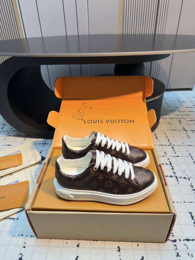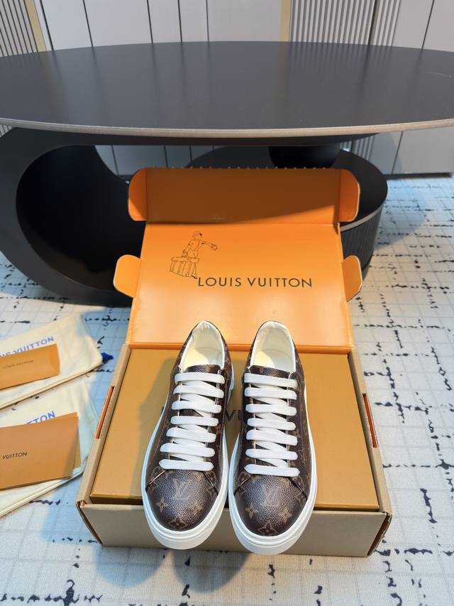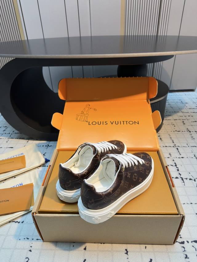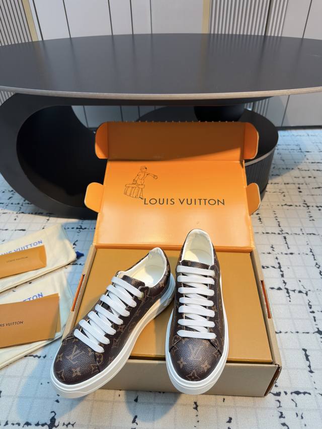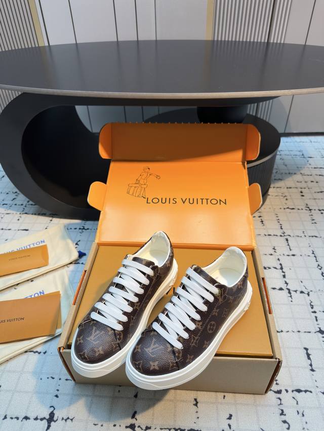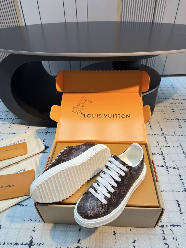 / Lv Time Out 系列经典厚底小白鞋 时尚感爆棚 ~!!活力满满,上脚超级舒适,无敌耐看。印花Logo彰显品牌魅力,闭眼入,顶级品质 鞋面进口丝绸牛皮,质