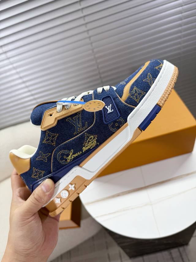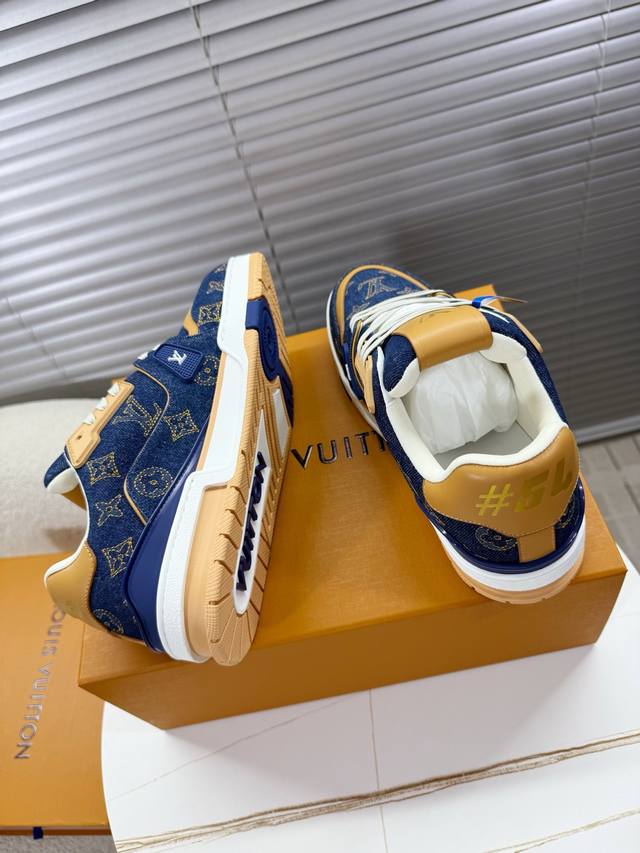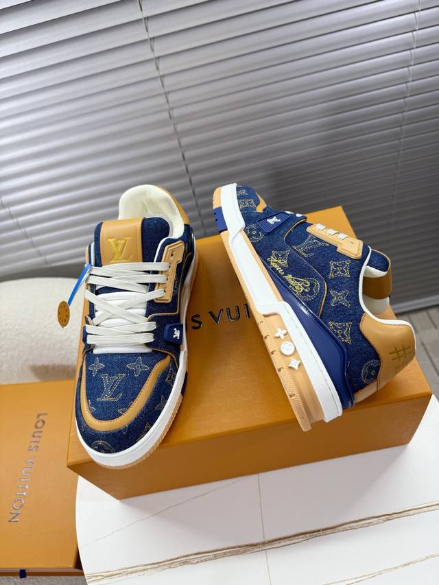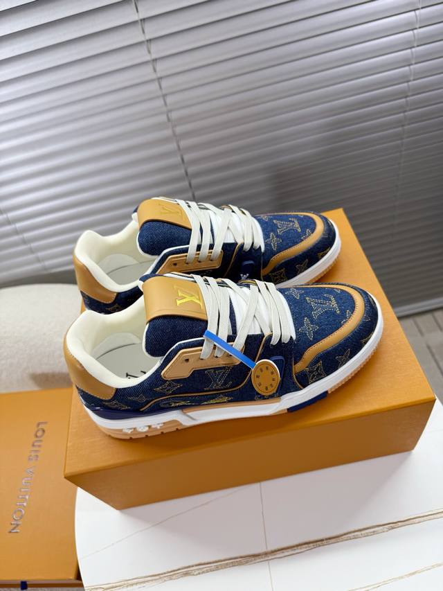 Lv Trainer~~全新升级版~~经典回归 DDD 情侣款,滑板鞋,篮球鞋,运动鞋 DDD Lv全新运动系列;复古风视感;拥入家族多方面经典原素;超级帅气~~ DDD 全皮革面料,搭配Lv徽章布面,透气纱网内里,原版大底,原版鞋楦,更多细节对比大货实物完美高端~~ DDD 海外代购豪华航空礼盒包装 DDD 35 40女款 39 45男款 DDD