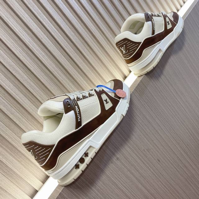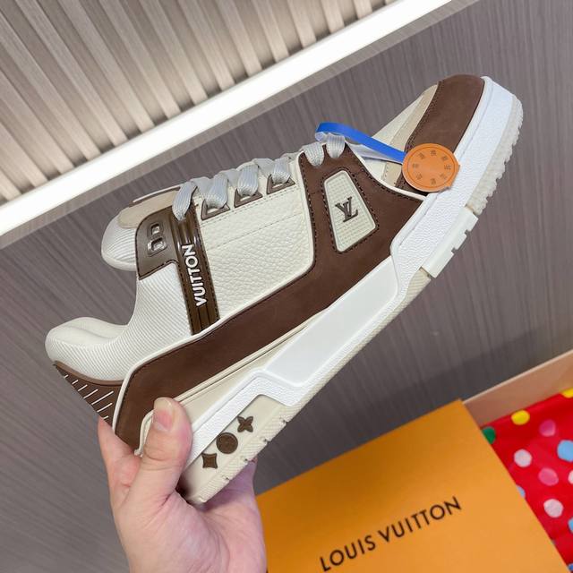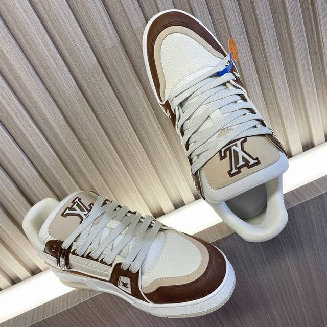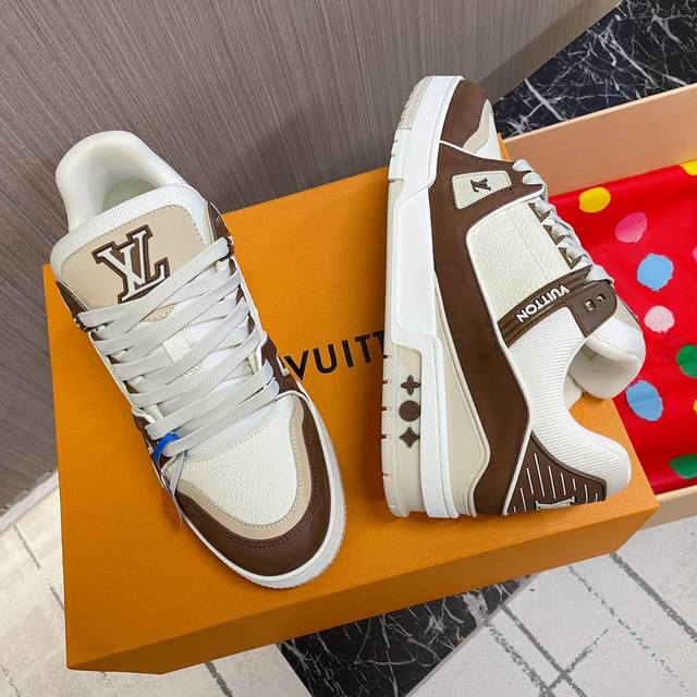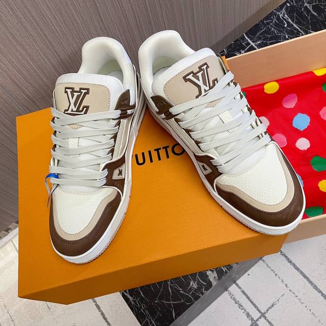 Lv Trainer~~全新升级版~~经典回归 Ddd 情侣款,滑板鞋,篮球鞋,运动鞋 Ddd Lv全新运动系列;复古风视感;拥入家族多方面经典原素;超级帅气~~ Ddd 全皮革面料,搭配Lv徽章布面,透气纱网内里,原版大底,原版鞋楦,更多细节对比大货实物完美高端~~ Ddd 海外代购豪华航空礼盒包装 Ddd 35 40女款 39 45男款 DDD