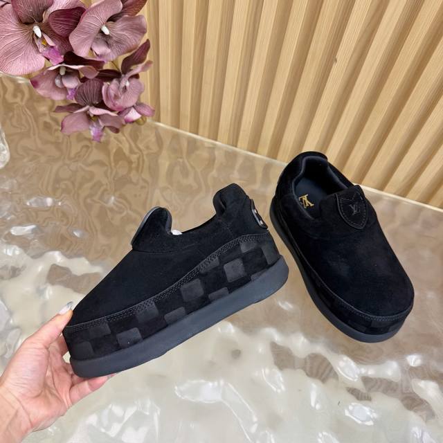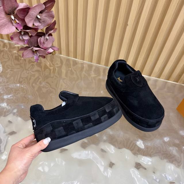 Lv X Ingo联名款 胖丁 阿甘鞋 厚底 情侣款 休闲 运动鞋鞋 DDD 顶级版本女款 男款350 DDD 原版购入开发 做货 Lv Yeti 系带鞋出自 Lv Yeti 系列,以前卫笔触融合日式“小脚”时尚美学与路易威登经典元素,巧妙致意入室脱鞋的日本传统文化。绒面牛皮革局部压印 Nigo 重绎的 Damier 图案,舒适便鞋构型彰显街头风范 DDD 配送专柜精美包装 DDD 面料: 原版进口牛反绒 DDD 内里:原版定制透气网里 DDD 鞋底:原版开模防滑Tpu材质 DDD 底厚:5Cm DDD