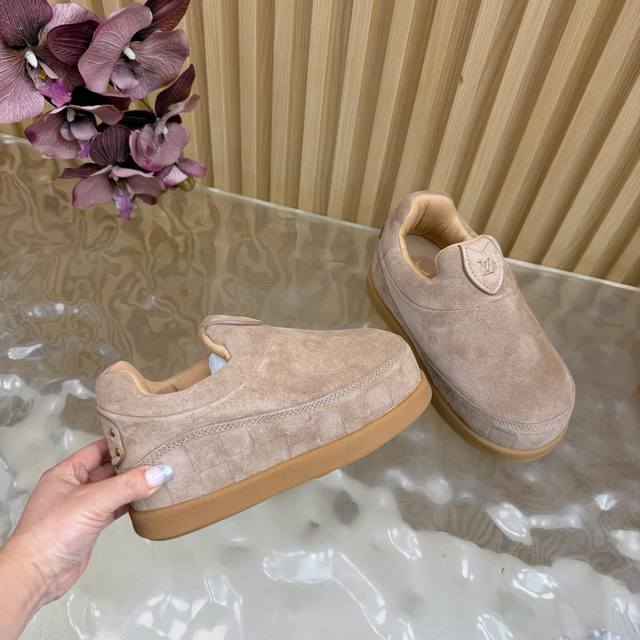 Lv X Ingo联名款 胖丁 阿甘鞋 厚底 情侣款 休闲 运动鞋鞋 DDD 顶级版本女款 男款350 DDD 原版购入开发 做货 Lv Yeti 系带鞋出自 Lv Yeti 系列,以前卫笔触融合日式“小脚”时尚美学与路易威登经典元素,巧妙致意入室脱鞋的日本传统文化。绒面牛皮革局部压印 Nigo 重绎的 Damier 图案,舒适便鞋构型彰显街头风范 DDD 配送专柜精美包装 DDD 面料: 原版进口牛反绒 DDD 内里:原版定制透气网里 DDD 鞋底:原版开模防滑Tpu材质 DDD 底厚:5Cm DDD