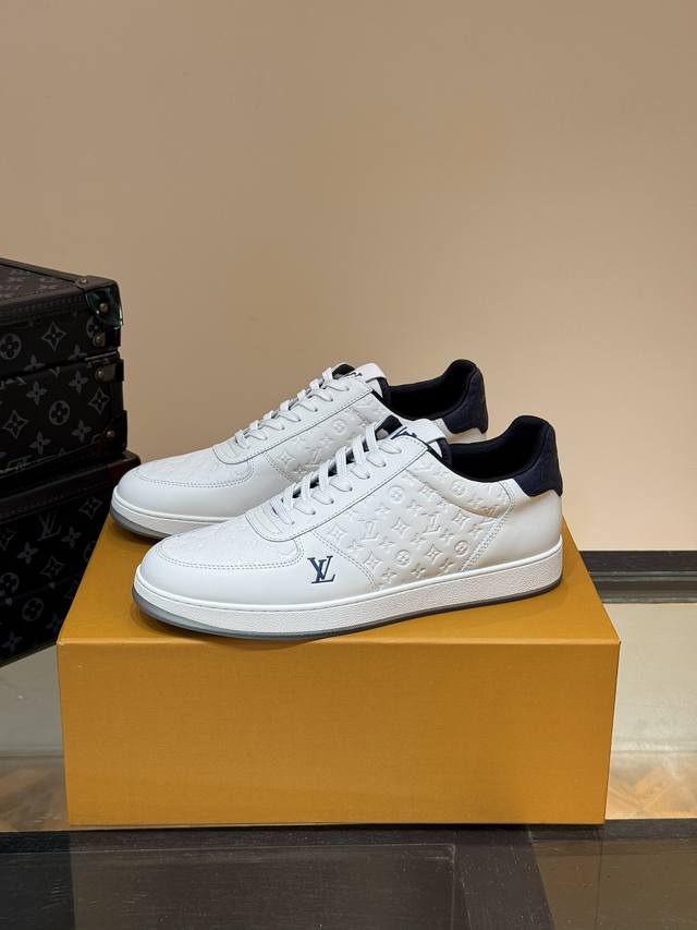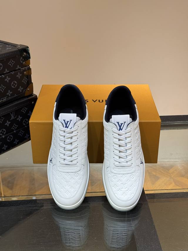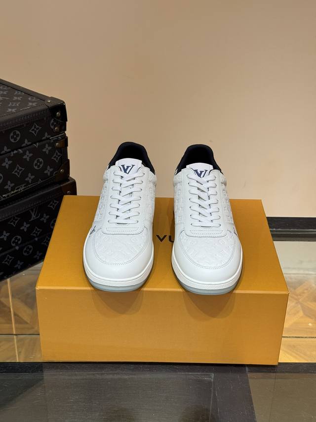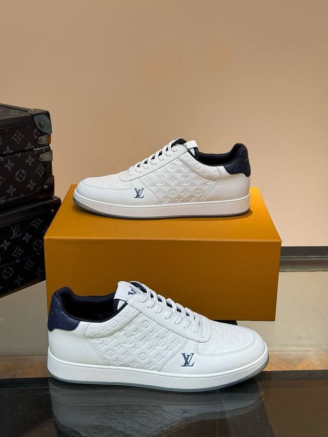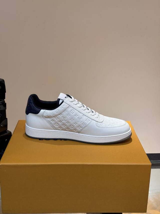 Ouis *Uitto* 男士经典休闲运动鞋,本款 Rivoli 运动鞋为柔软牛皮革描摹经典压花。塑造优雅鞋面。橡胶外底厚实而不失轻盈,其上点缀路易威登标识压纹。加衬内底和科技内衬再度升级舒适体验。意大利进口羊皮内里高档舒适,原版大底轻盈耐磨!纯手工制作,细节决定品质! Size:38-44