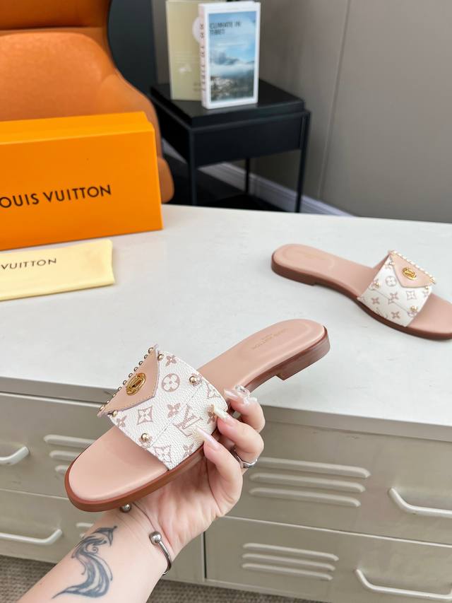 P230 真皮底可定做+40 Louis Vuitton路易威登春夏最新款 此款Lv Frame 平底凉拖拼Monogram 与 Monogram Reverse 帆布,展露时尚惬意格调。宽幅前带添缀饰钉和 Lv Circle 标识,与 Camera Box 手袋的开合设计一脉相承,耐磨皮革外底完善整体。 給炎热的夏天带来不一样視觉盛宴