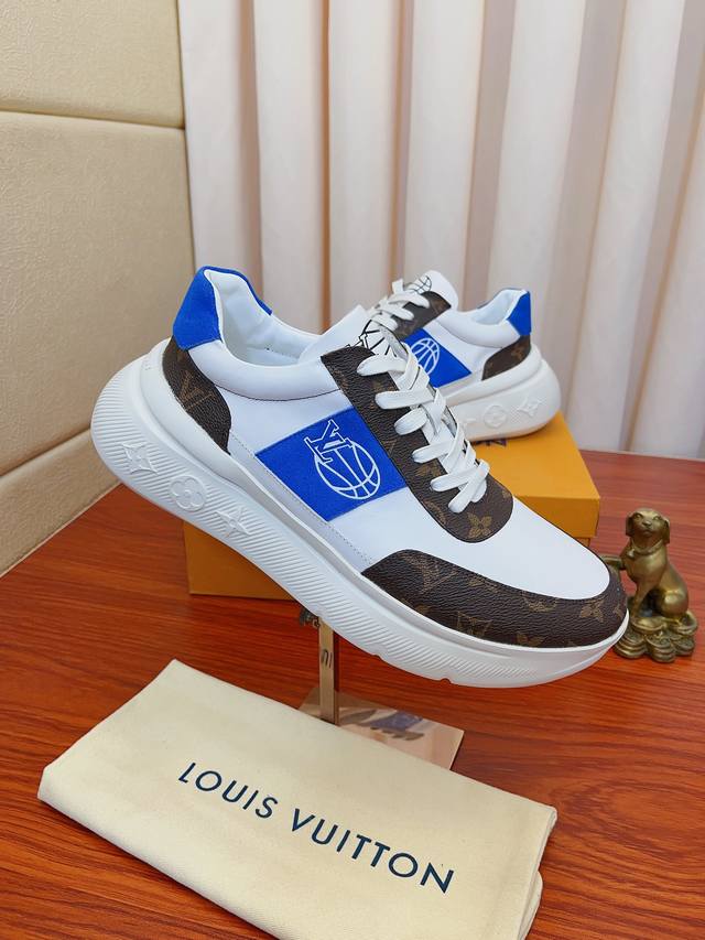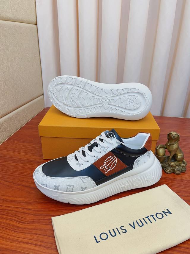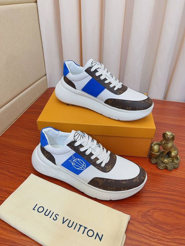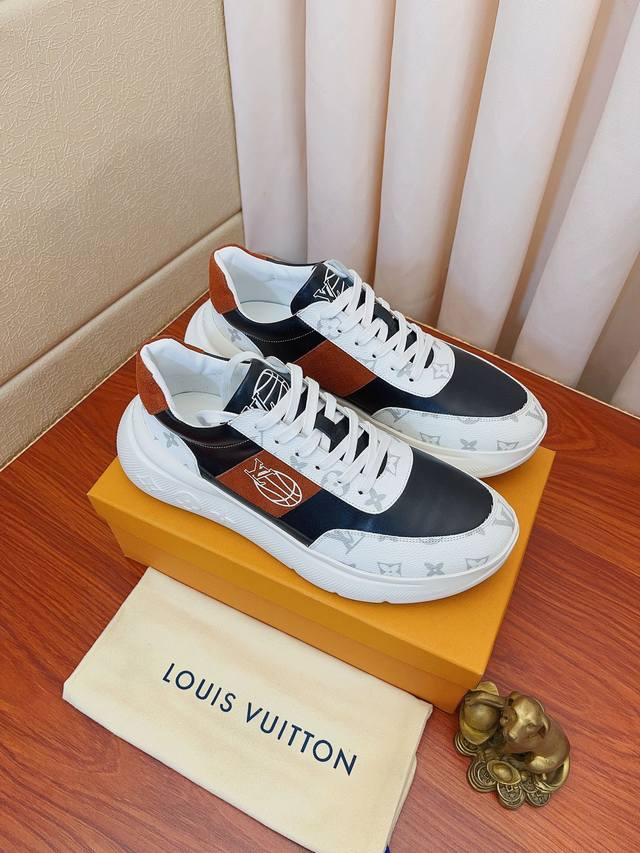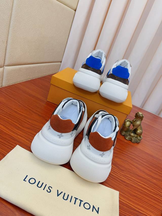 价: 高版本全套包装 Lv 驴牌休闲运动鞋 大胆的前卫设计牛皮真皮内里Tpu组合大底Lv 早春Trunk Show。每个拼色的材质都是原版独家定制.码数:38-