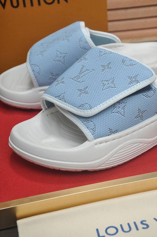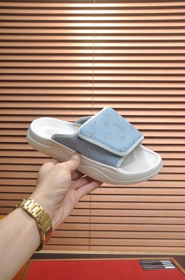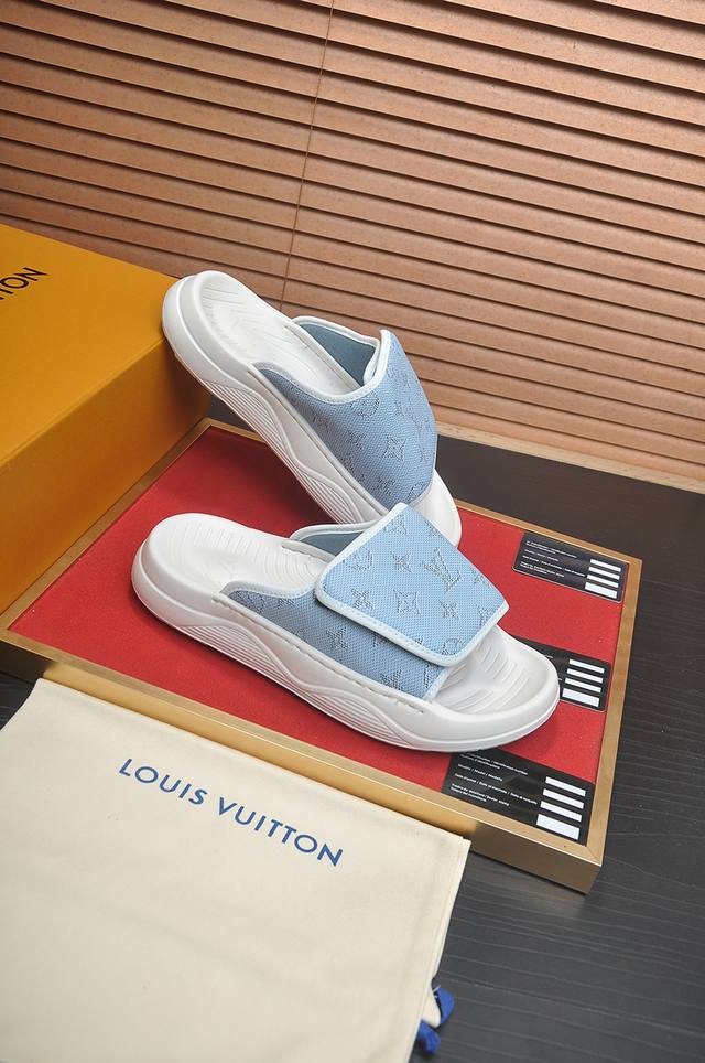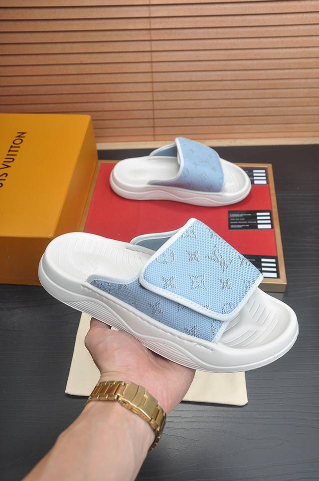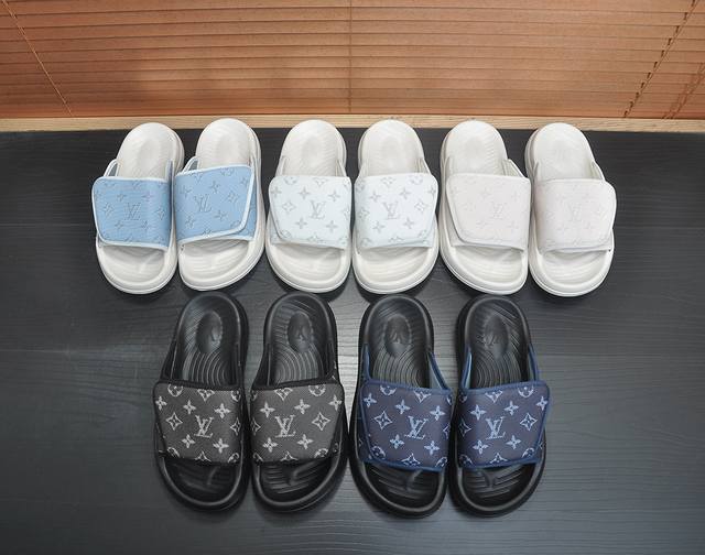 louis Vuitton路易威登新款拖鞋火爆上市 1:1高级定制 秒杀一切仿品 原版开模Logo冲孔装饰 既时尚又美观 面料:小牛皮 羊皮...